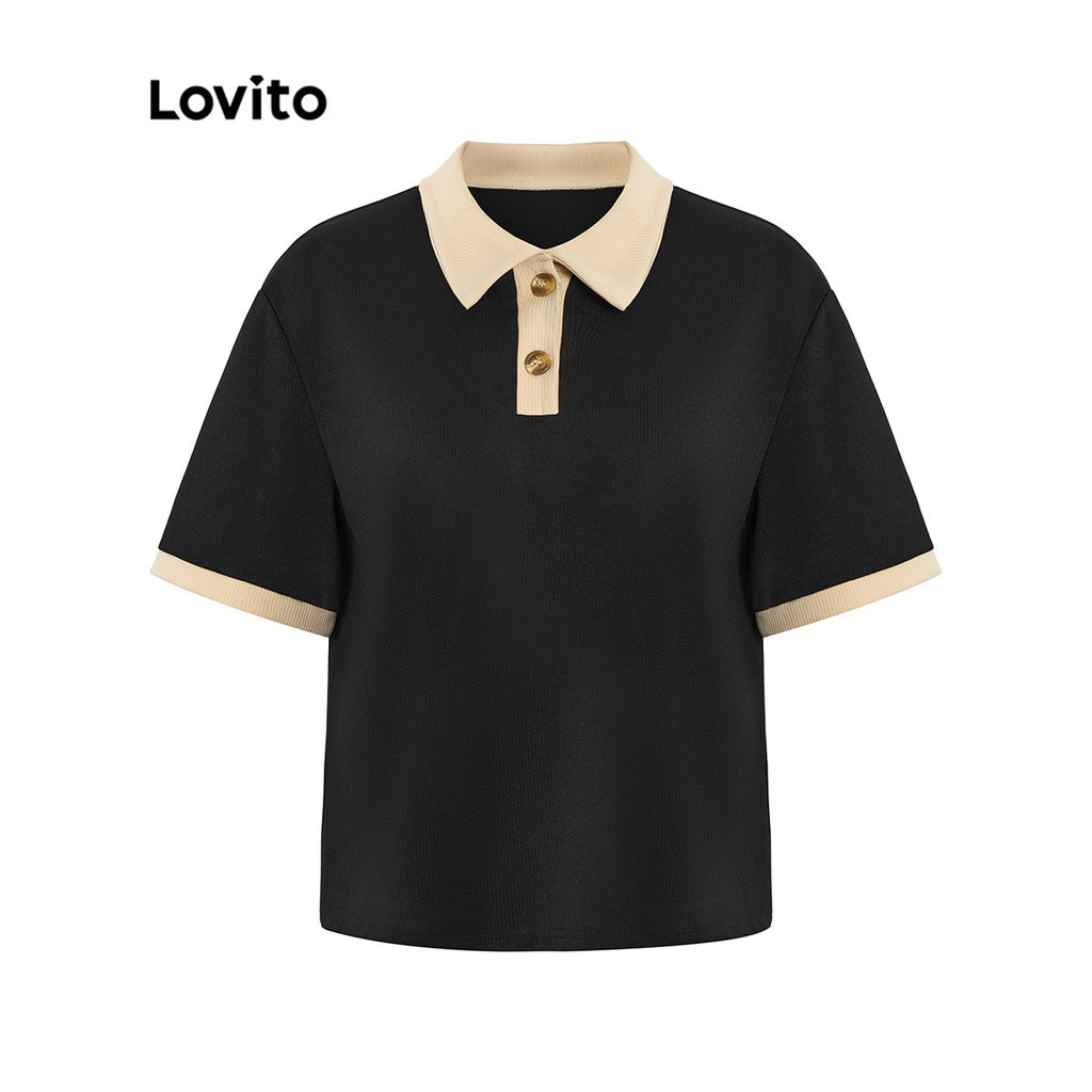 Lovito Áo polo kẻ sọc màu khối thường ngày cho Nữ Áo dệt kim ngắn tay lex01010 (Nhiều màu)
