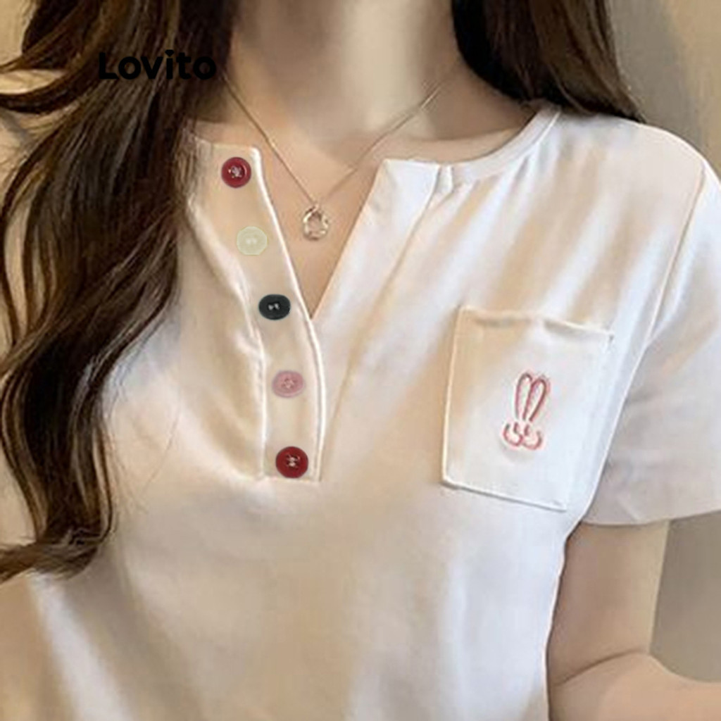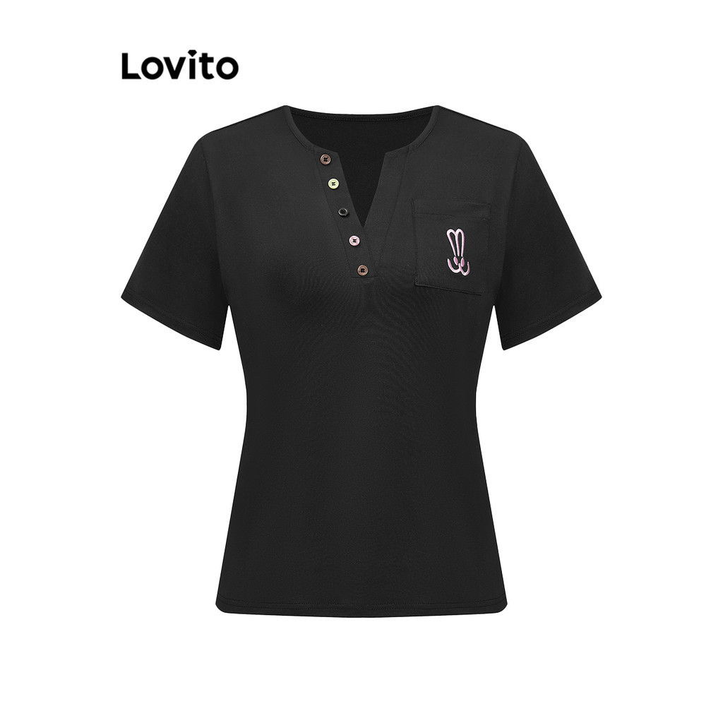 Lovito Áo Thun Nữ Tay Ngắn Trơn Cổ Chữ V thường ngày l53ad077 (Nhiều màu)