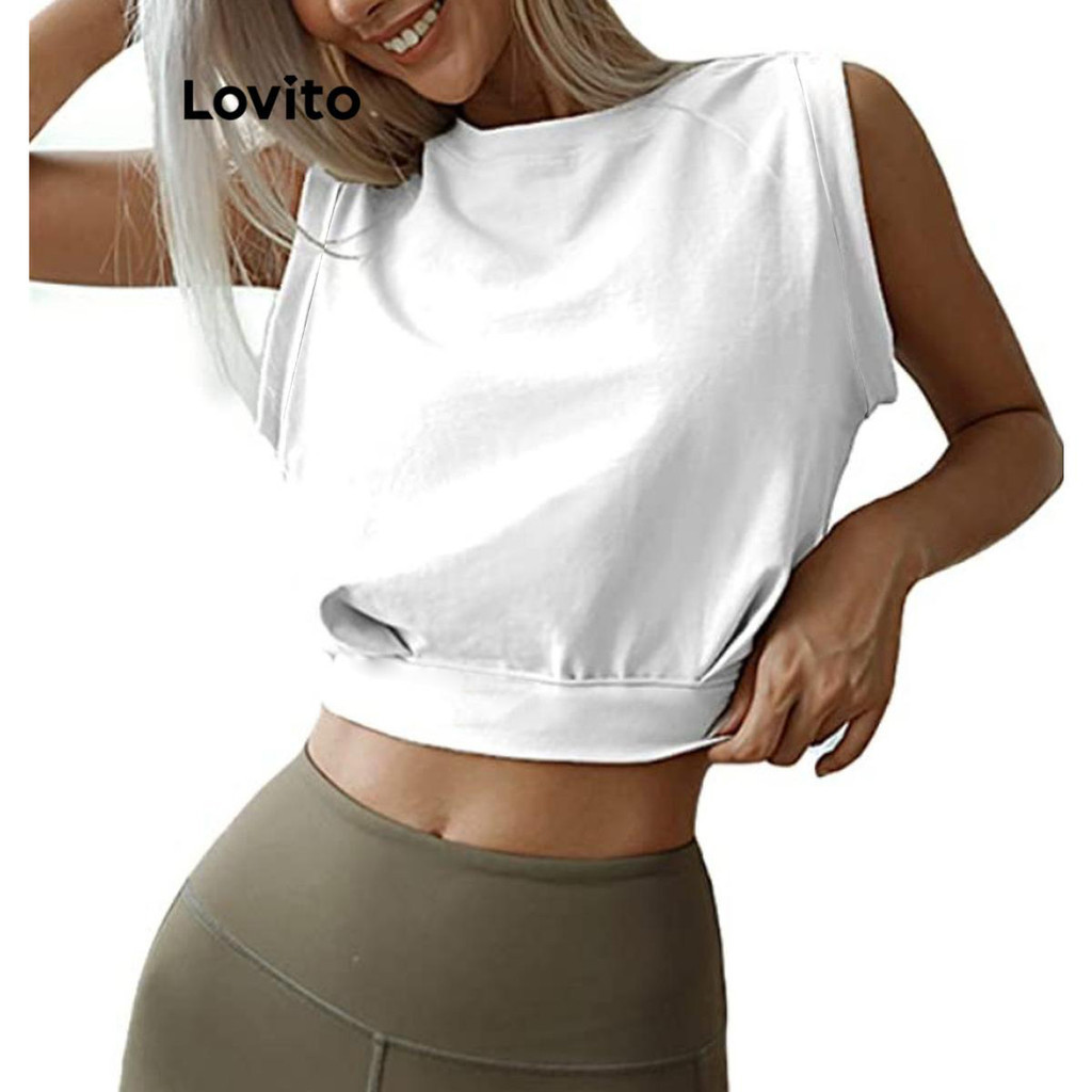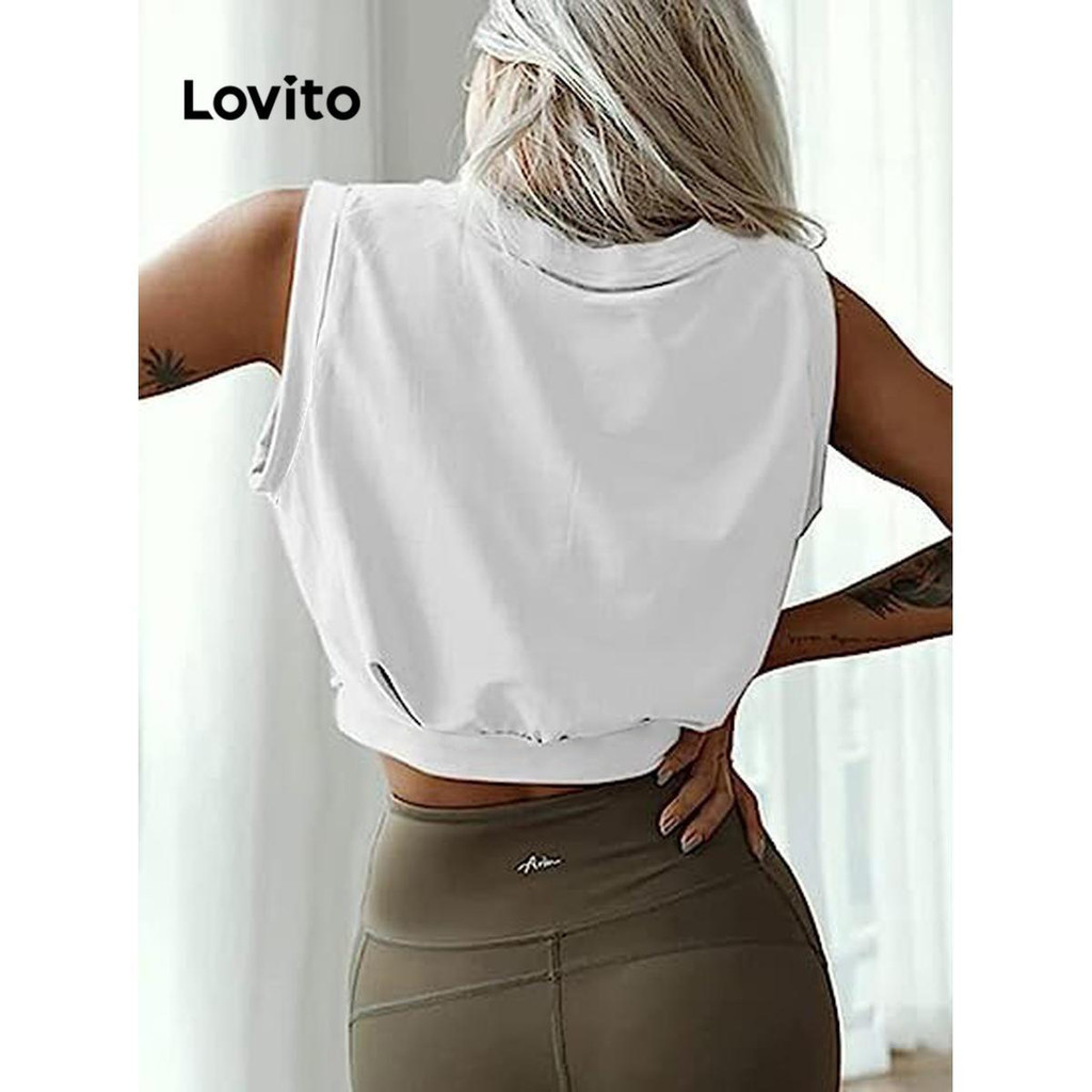 Lovito Áo tập Yoga thể thao Một hàng khuy cho nữ áo thể thao màu trơn lnl50247