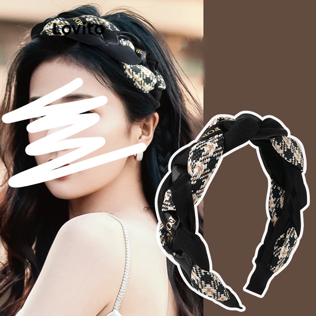Lovito băng đô màu trơn dạng lưới cơ bản cho nữ lna09080 (Màu Kaki nhạt/Màu đen)