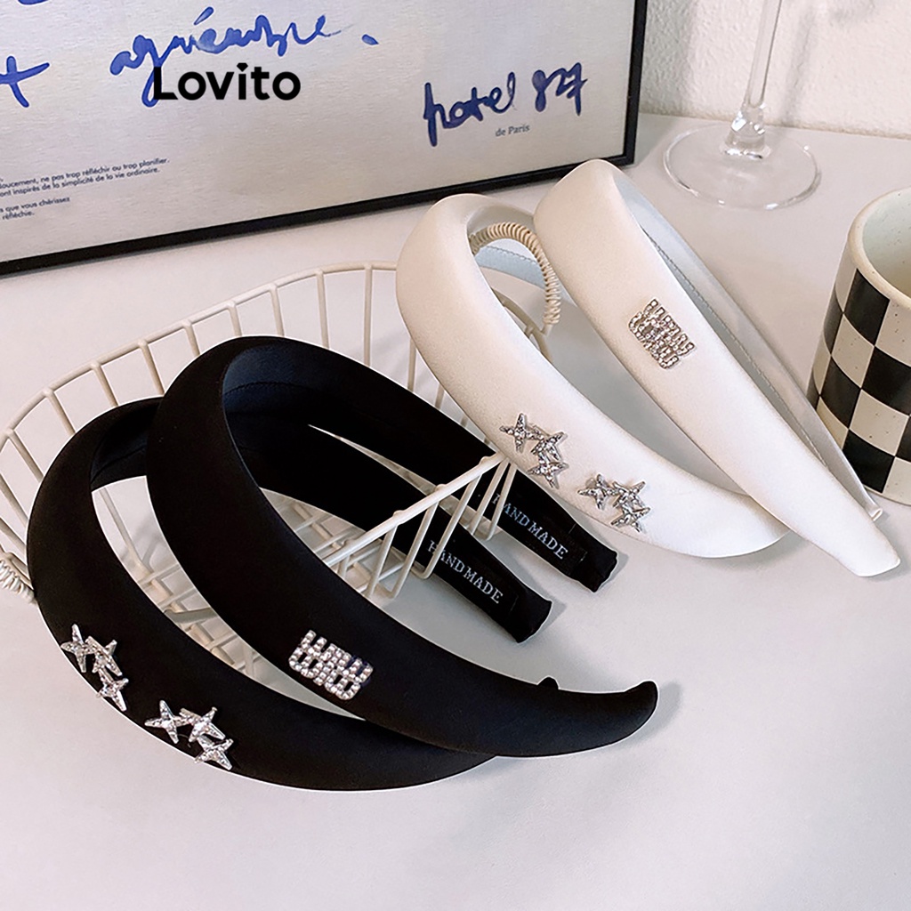 Lovito băng đô xếp ly màu trơn thường ngày cho Nữ lna32503 (Màu Trắng/Đen)