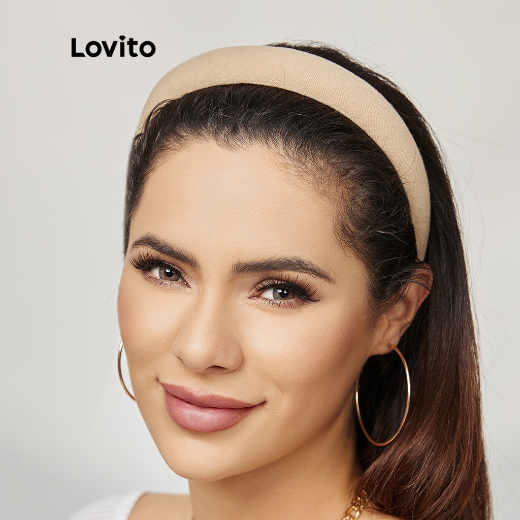 Lovito băng đô màu trơn dạng lưới cơ bản cho nữ lna09080 (Màu Kaki nhạt/Màu đen)