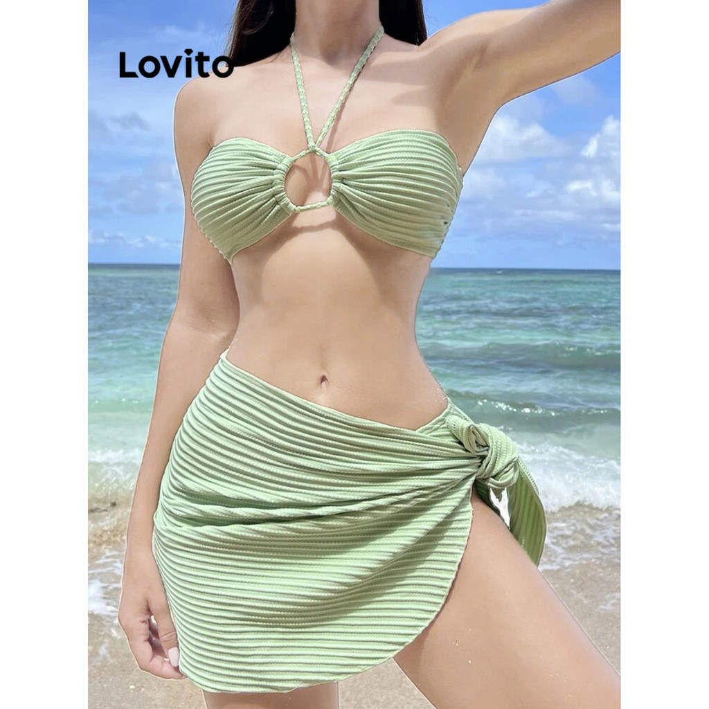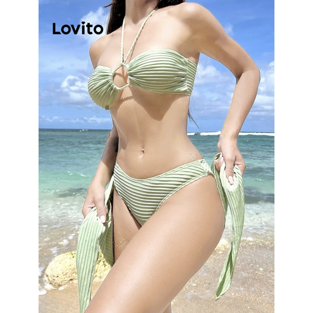 Lovito Quần bikini nữ hai dây màu trơn gợi cảm lnl36162 (Trắng/đỏ/xanh lá/Xanh dương/Đen)
