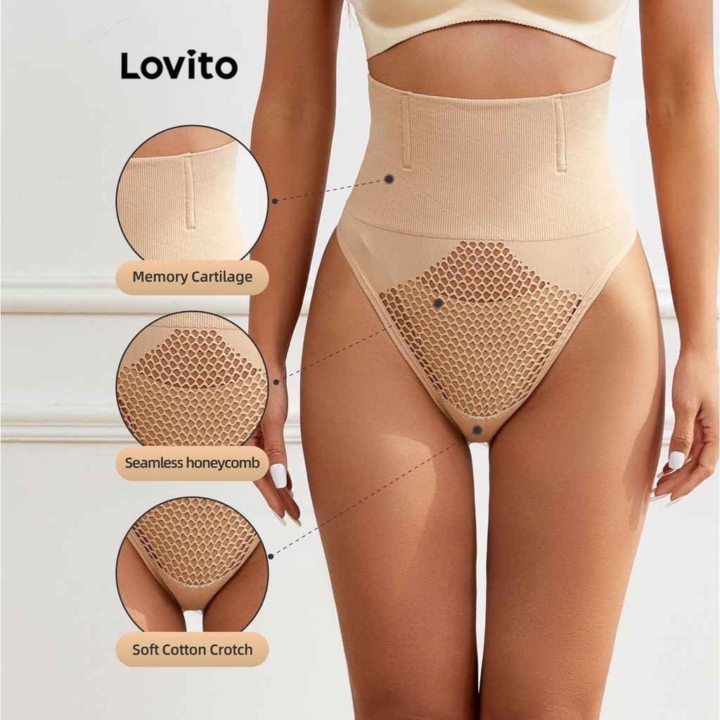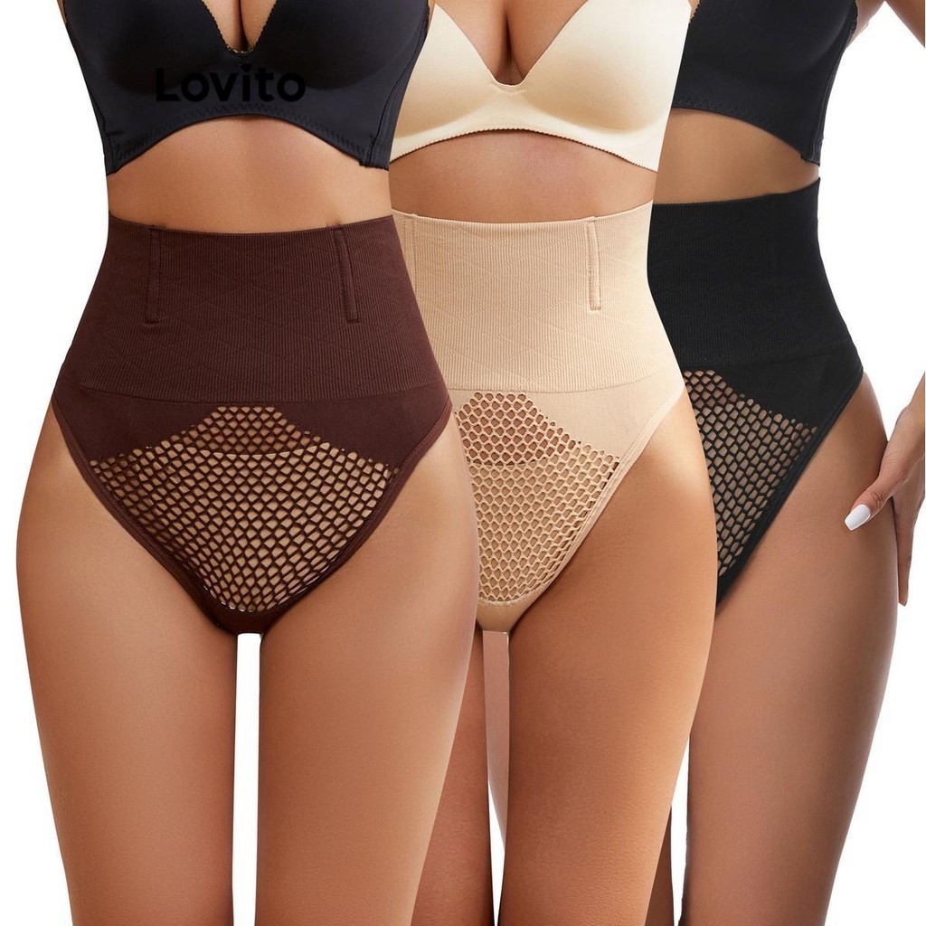 Lovito áo nịt ngực thắt lưng dạng lưới màu trơn mặc thường ngày cho Nữ l48l042 (Màu Trắng/Đen)