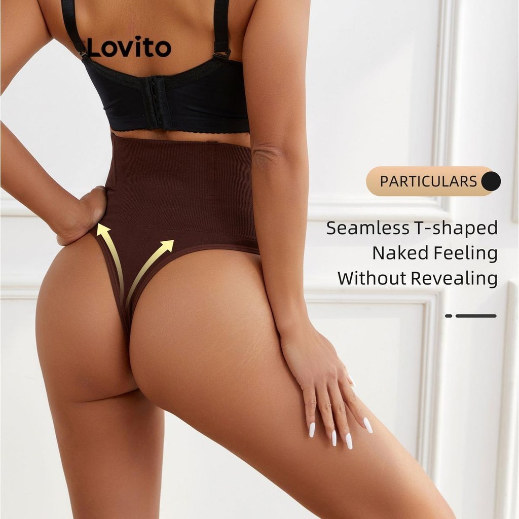 Lovito áo nịt ngực định hình cơ thể màu trơn thường ngày l18x348 (Cà phê/Đen)