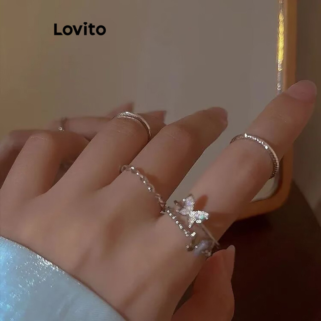 Lovito Nhẫn kim cương giả màu trơn thường ngày cho Nữ lfa01069 (Trắng/Bạc)