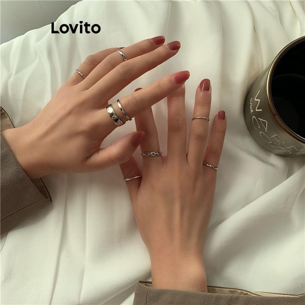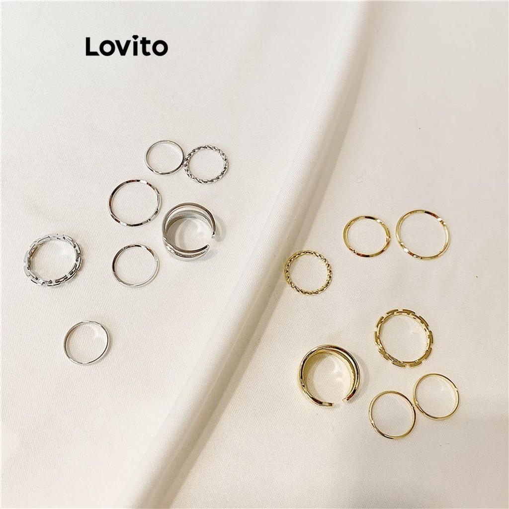 Lovito 10 chiếc Nhẫn Phong cách đơn giản đơn giản phối họa tiết rắn l004007 (màu vàng kim)