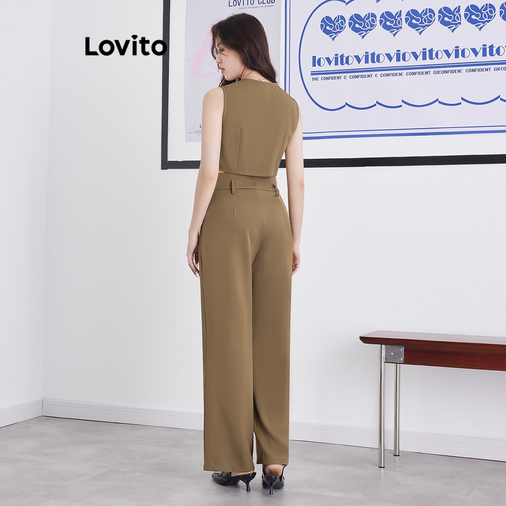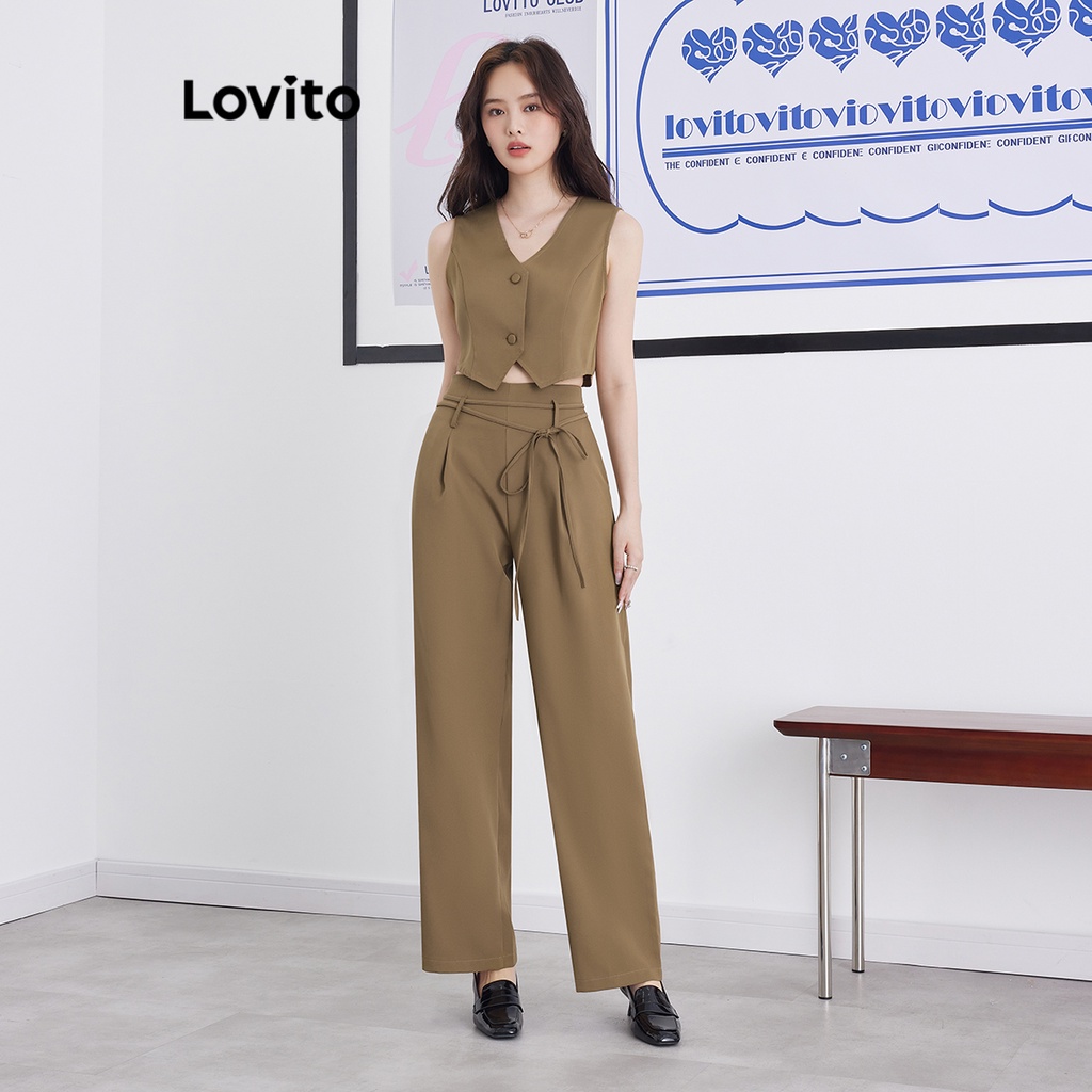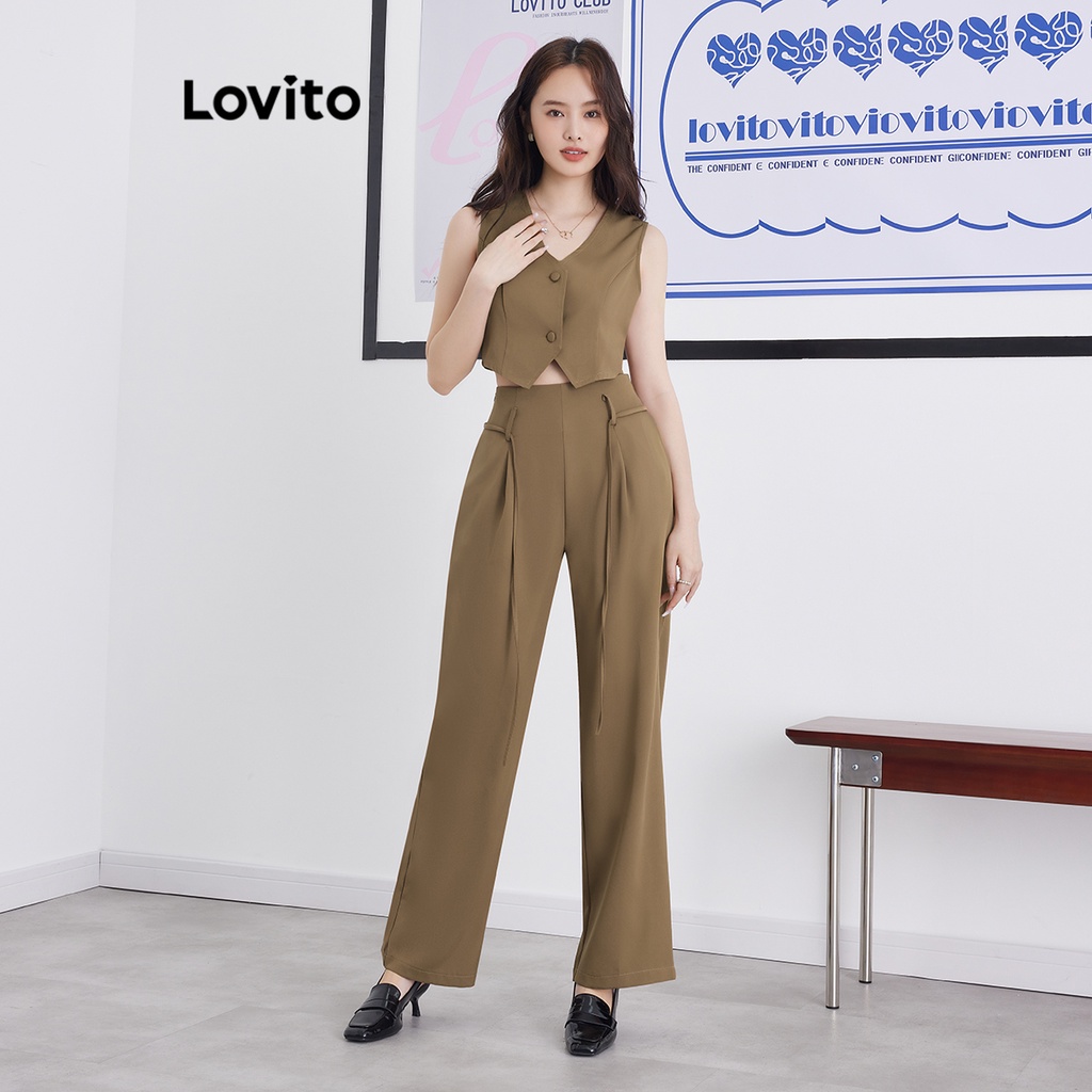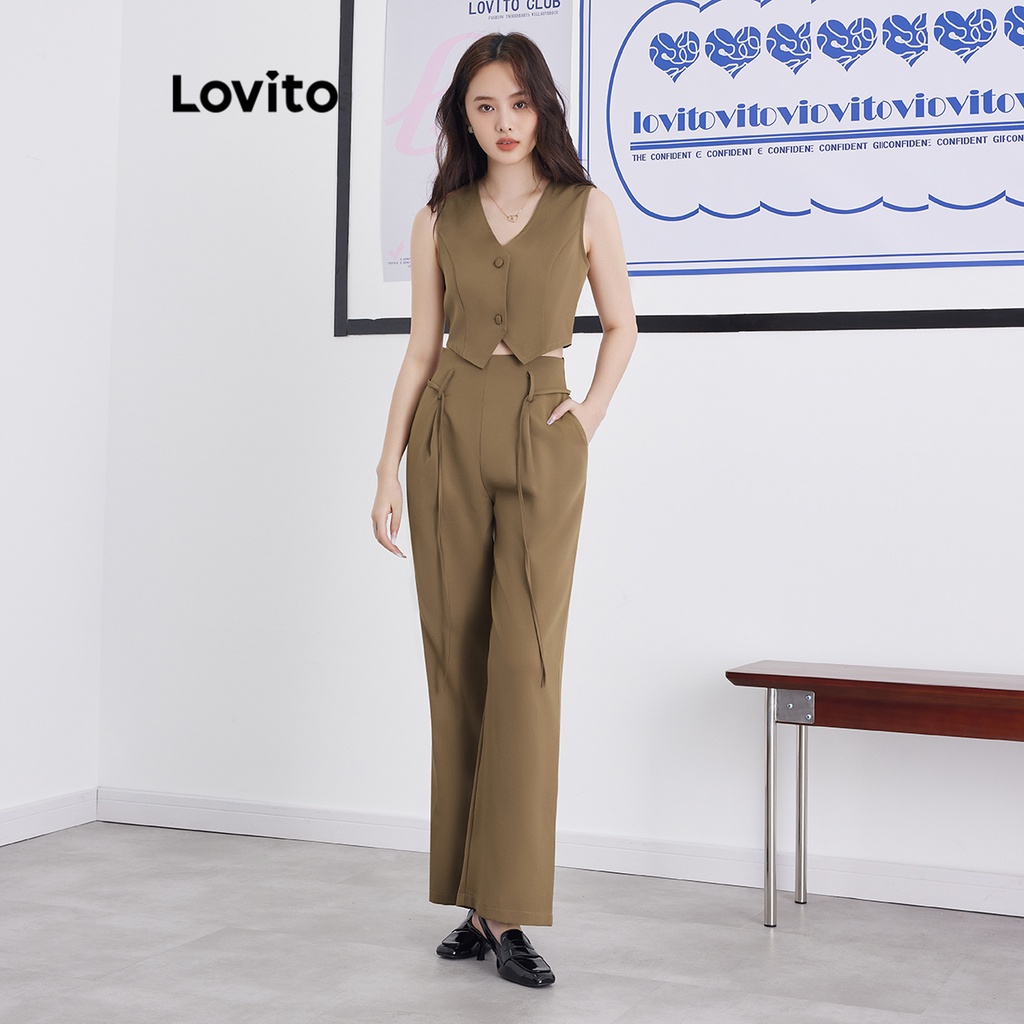 Lovito Bộ quần dài có túi nút màu trơn thường ngày cho Nữ l62ed118 (Nhiều màu)