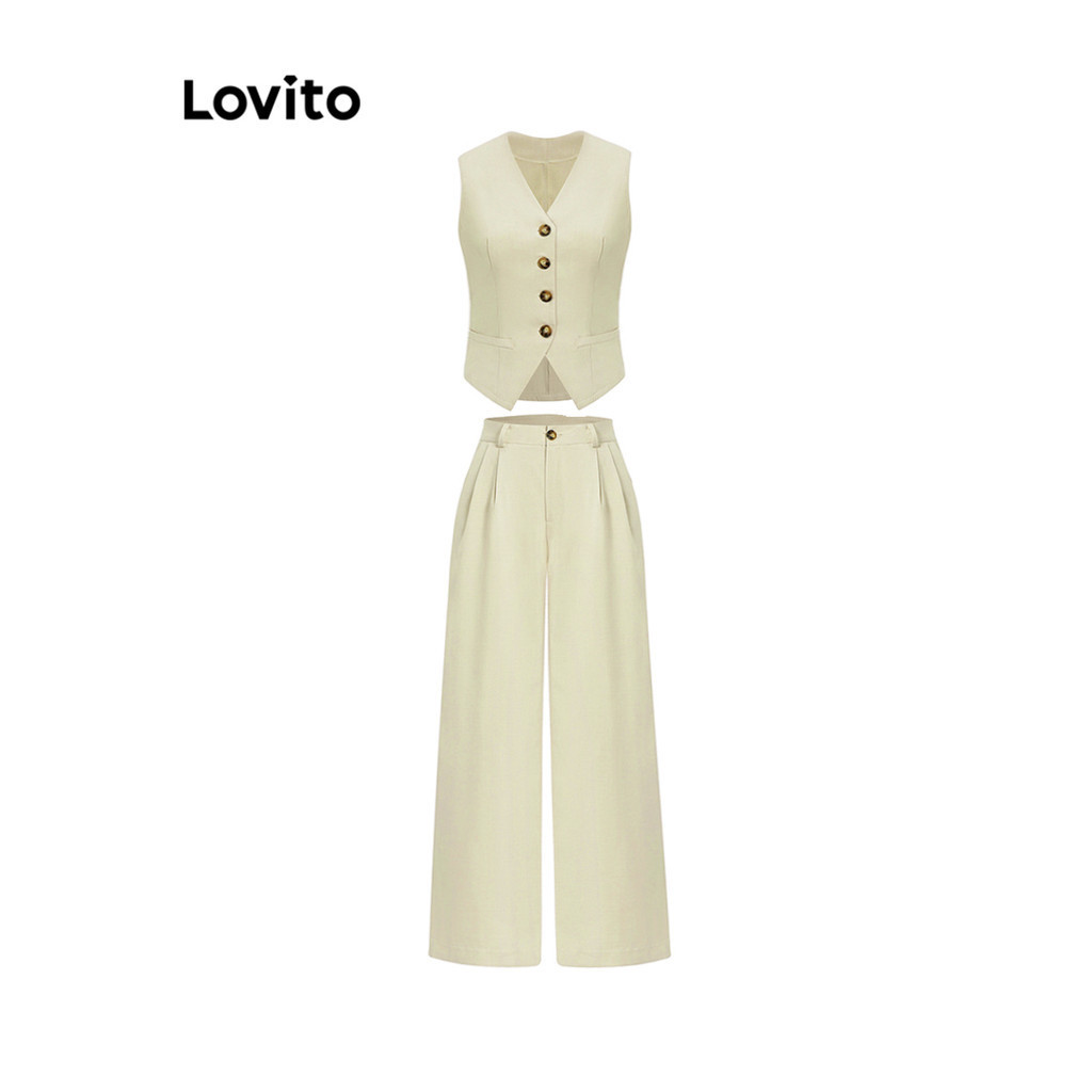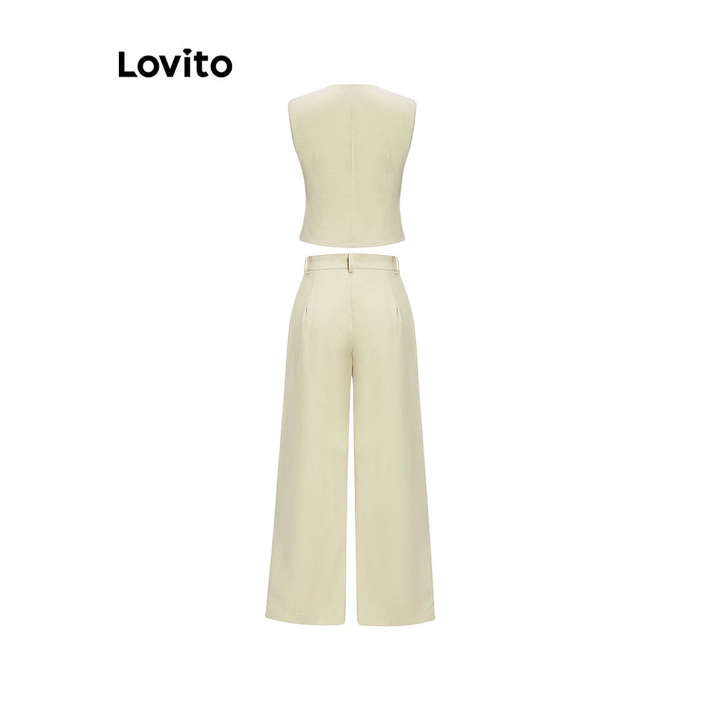 Lovito bộ quần dài xếp ly màu trơn thường ngày cho Nữ l62ed117 (Nhiều màu)