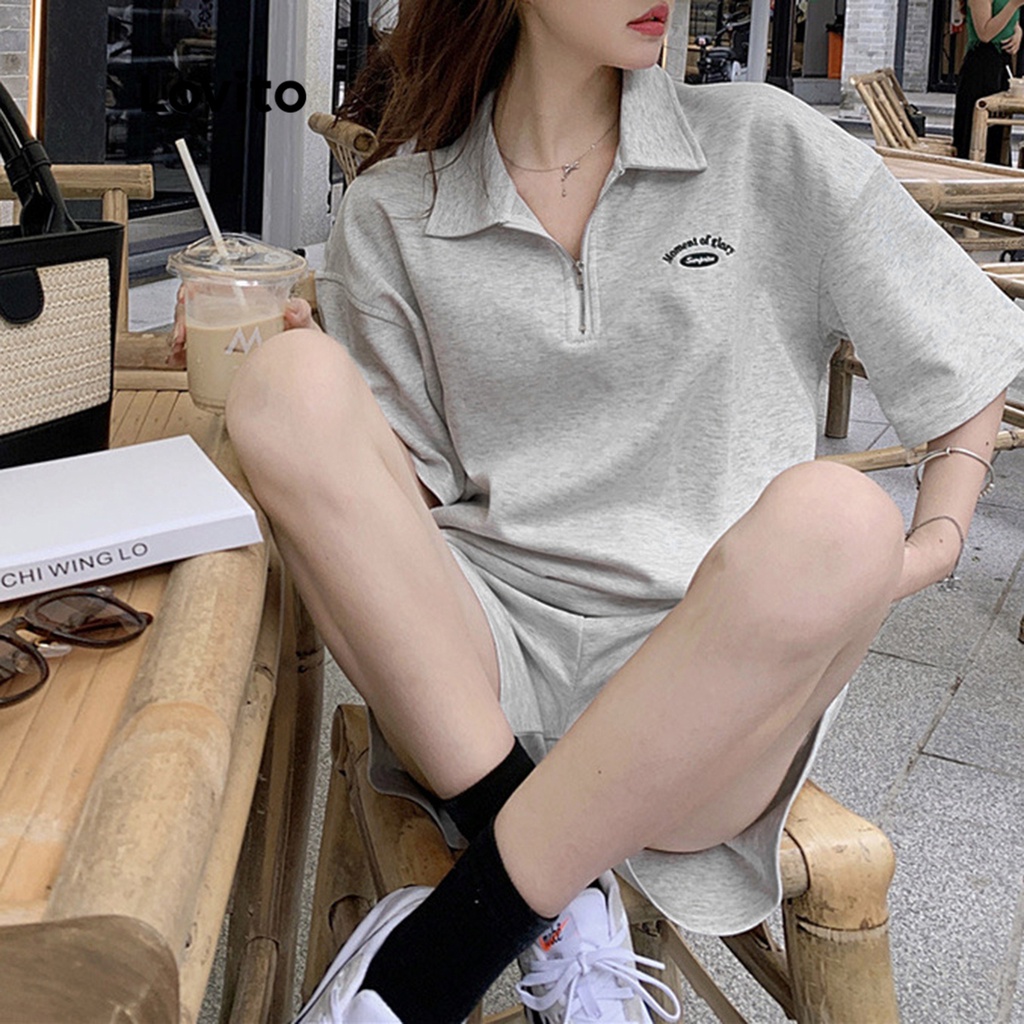 Lovito bộ quần đùi nữ thường ngày có khóa kéo màu trơn l56ed149 (Màu Trắng)
