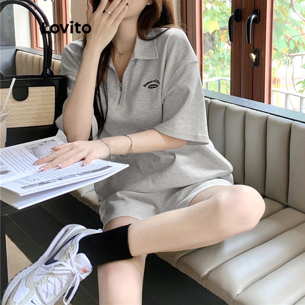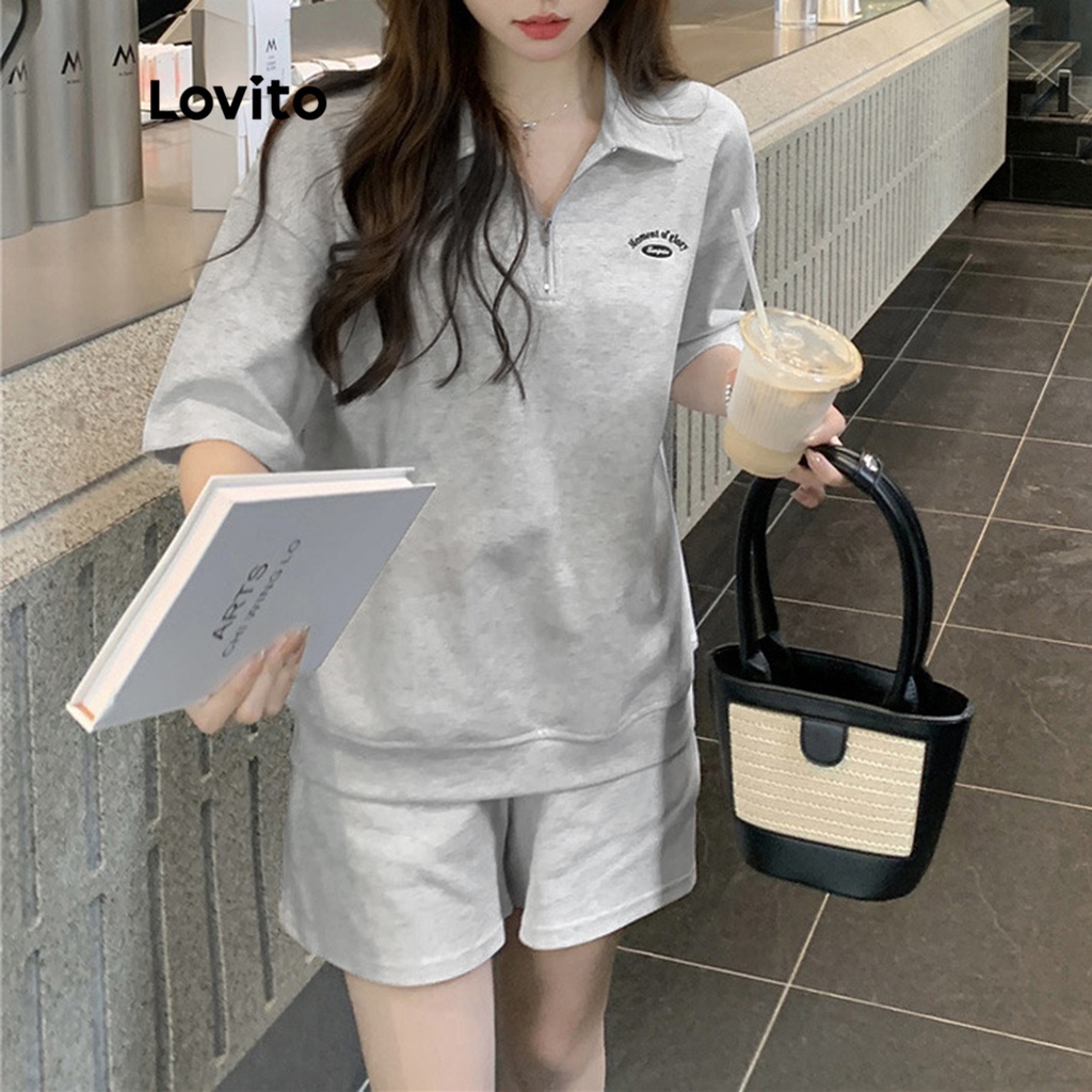 Lovito bộ quần đùi thường ngày có túi phía trước cài khuy cho nữ l65ed104 (trên/dưới)