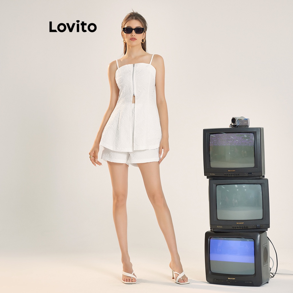 Lovito bộ quần đùi thường ngày có túi phía trước cài khuy cho nữ l65ed104 (trên/dưới)