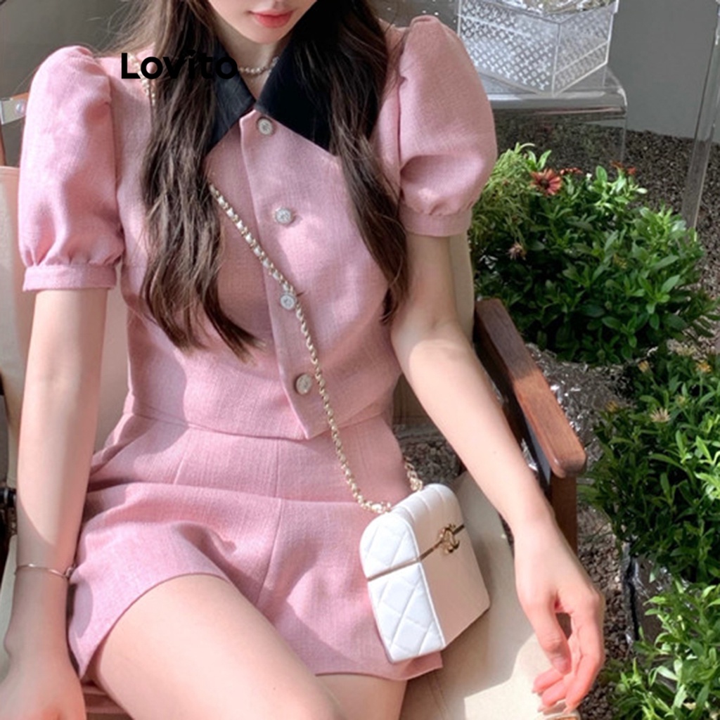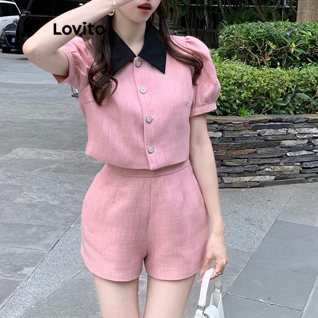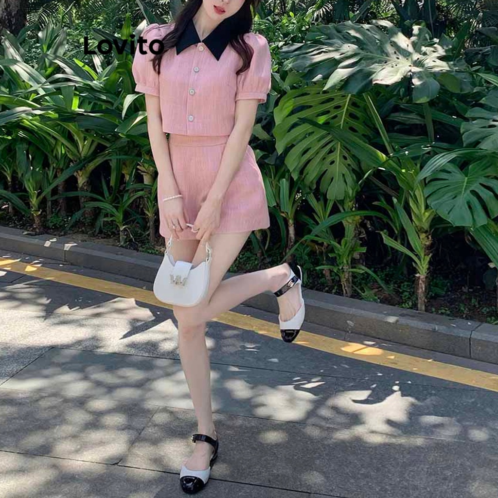 Lovito bộ quần đùi thường ngày có túi phía trước cài khuy cho nữ l65ed104 (trên/dưới)