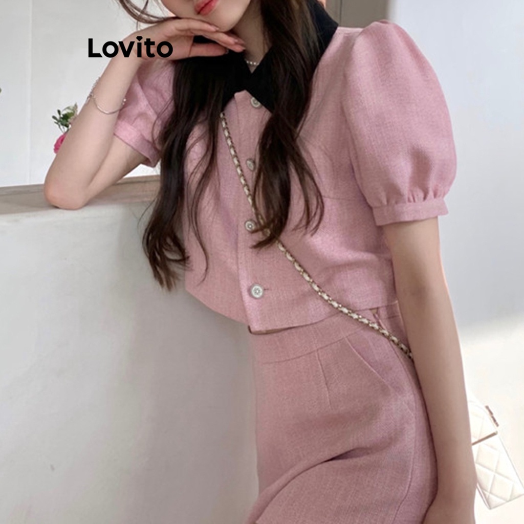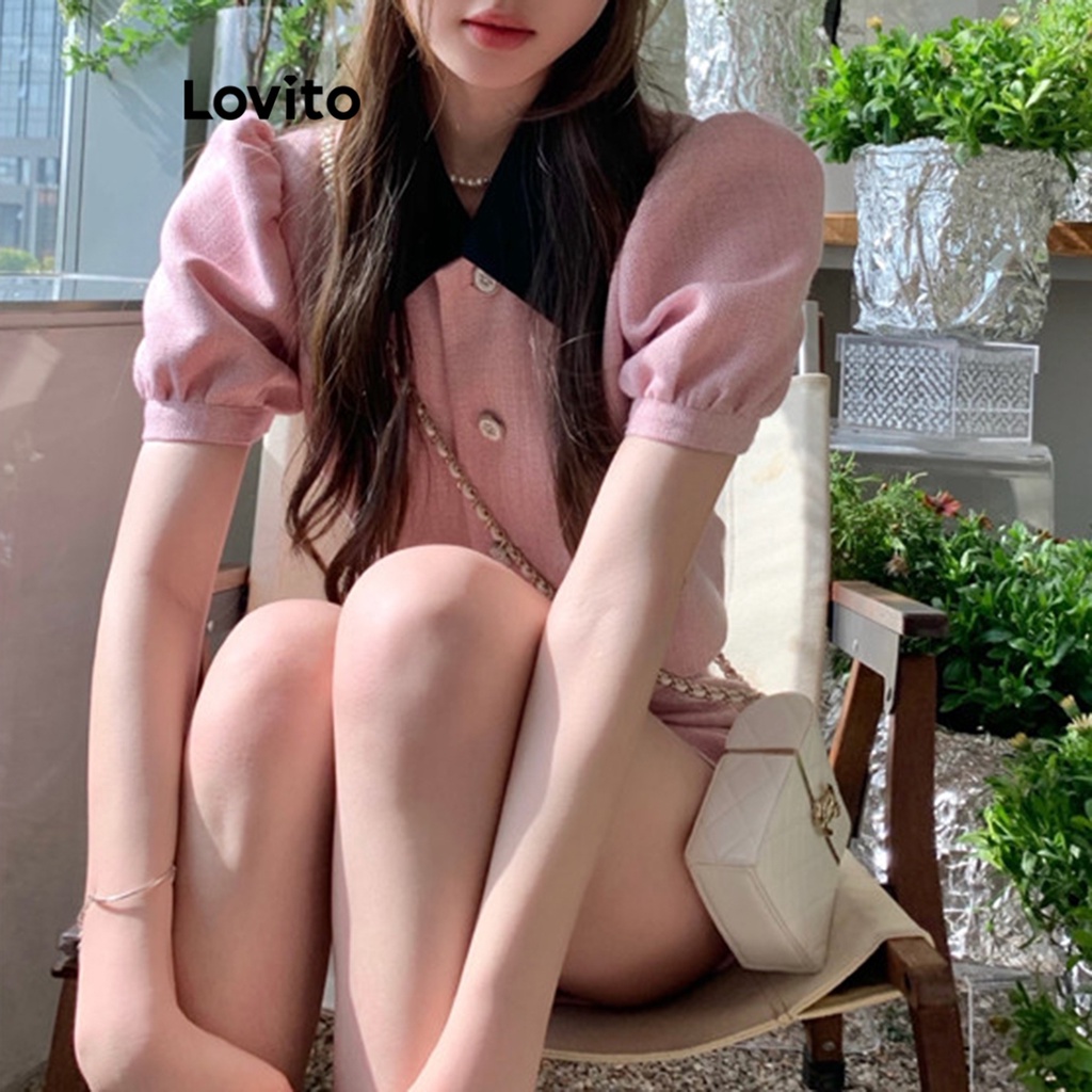 Lovito bộ quần đùi áo mặc trong màu trơn thường ngày l61ad100 (Áo cánh/váy)