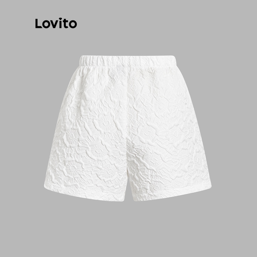 Lovito bộ quần đùi nữ thường ngày có khóa kéo màu trơn l56ed149 (Màu Trắng)