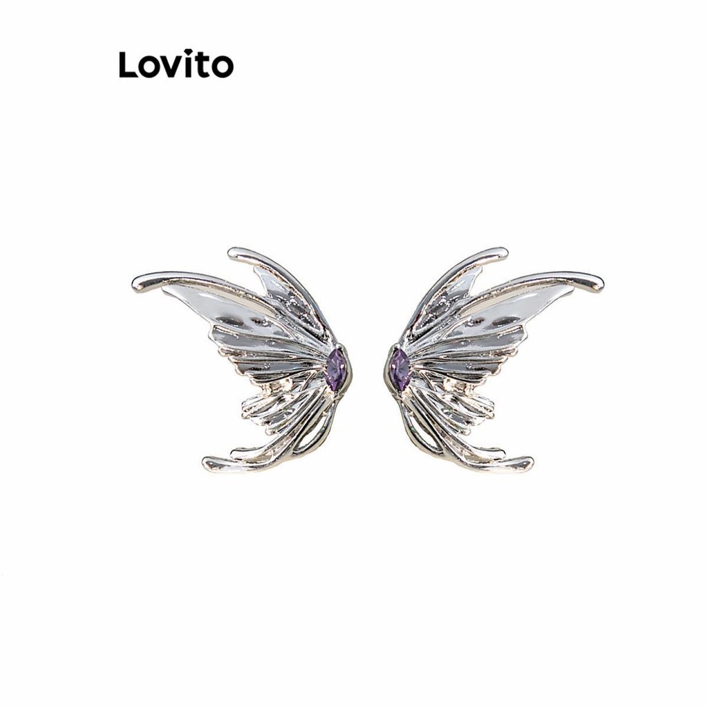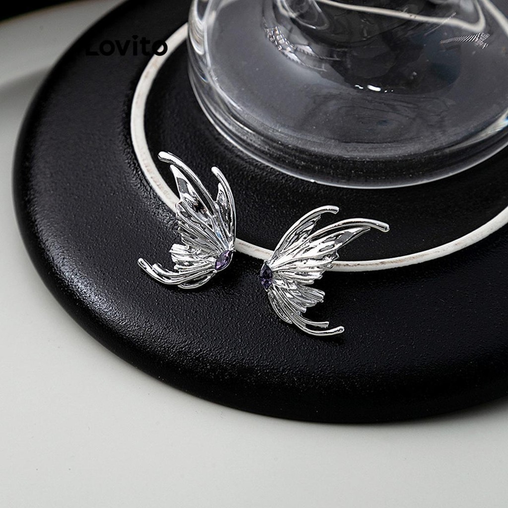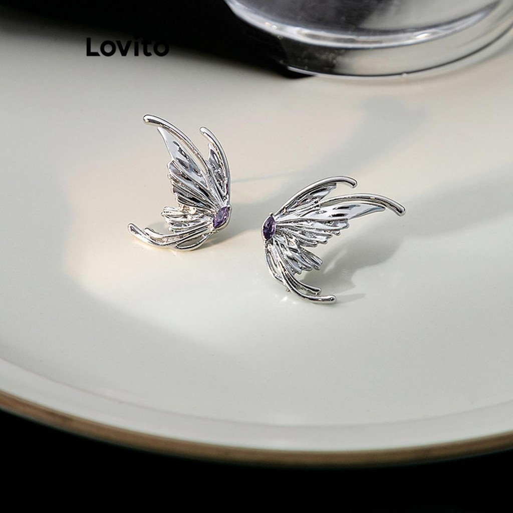 Lovito Bông tai dạng hạt kim loại đính nơ kim cương giả cho nữ lfa25182