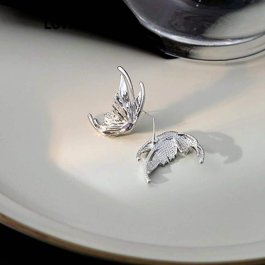 [Miễn phí vận chuyển] Khuyên tai giả đá hình thiên nga Khuyên tai bạc Sterling Khuyên tai hình khối Zirconia