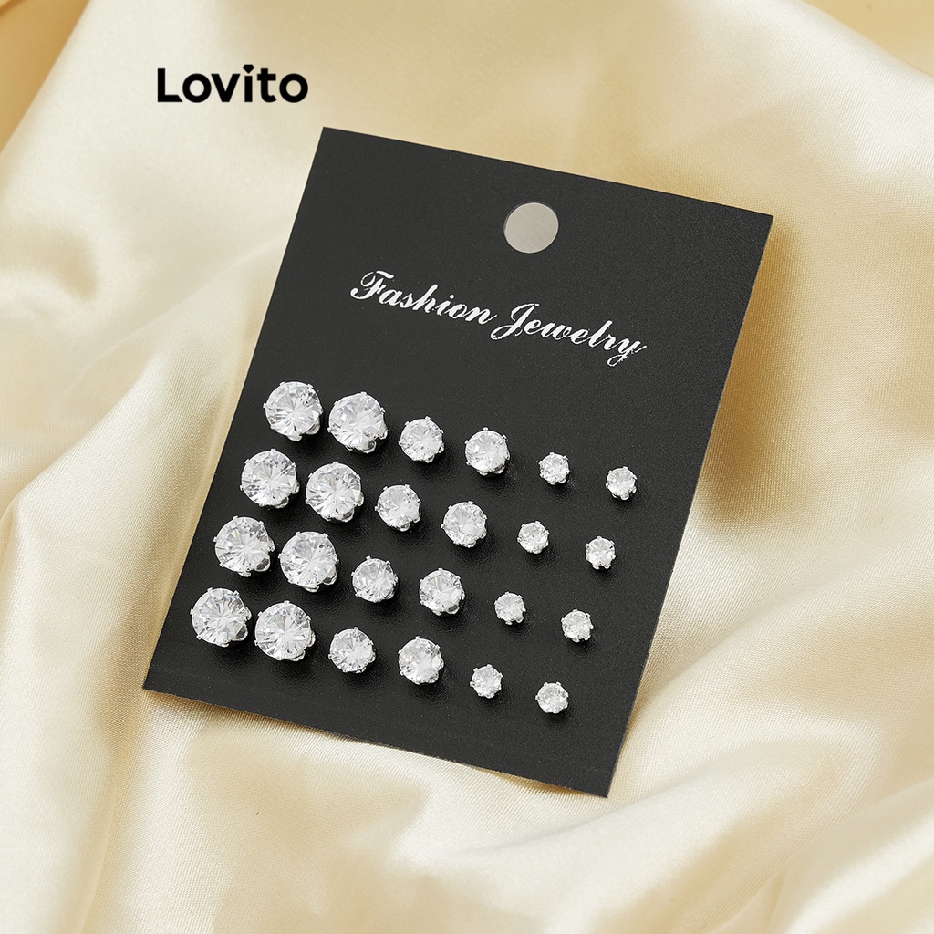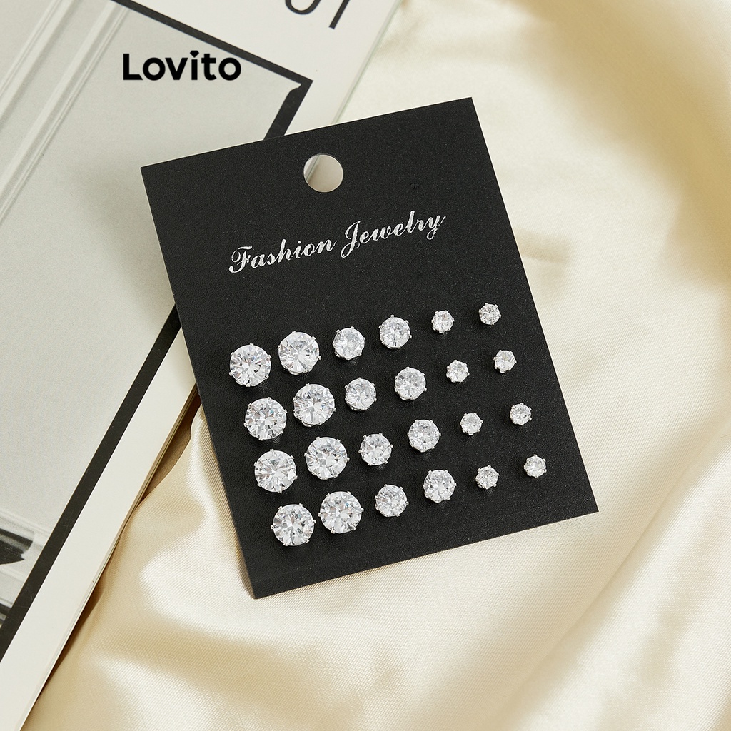 Lovito bông tai kim loại màu trơn thường ngày cho Nữ lfa01130 (Vàng/Bạc)