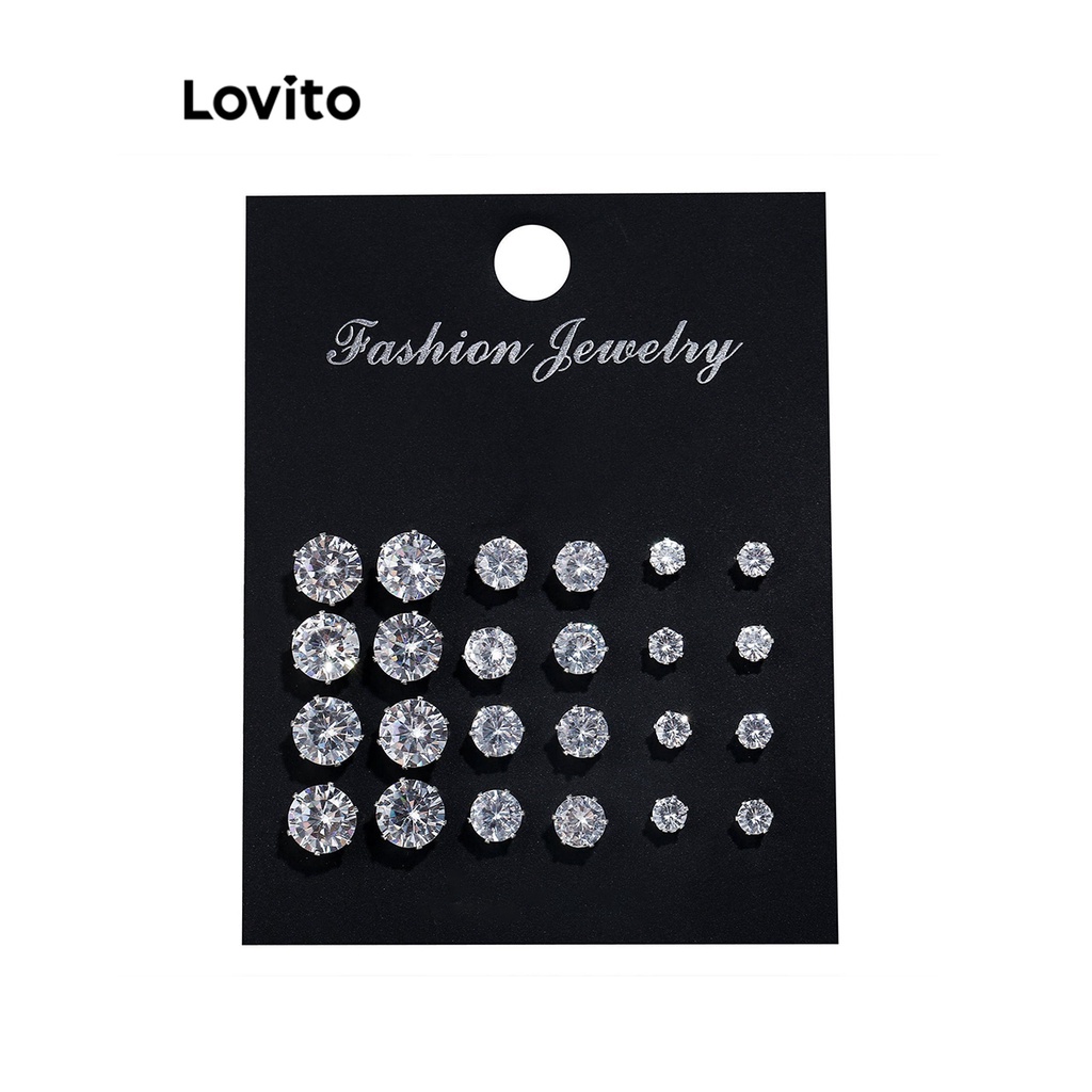 Lovito 6 đôi bông tai bướm hình trái tim kim cương giả phong cách thanh lịch cho nữ l17m167 (màu vàng kim)