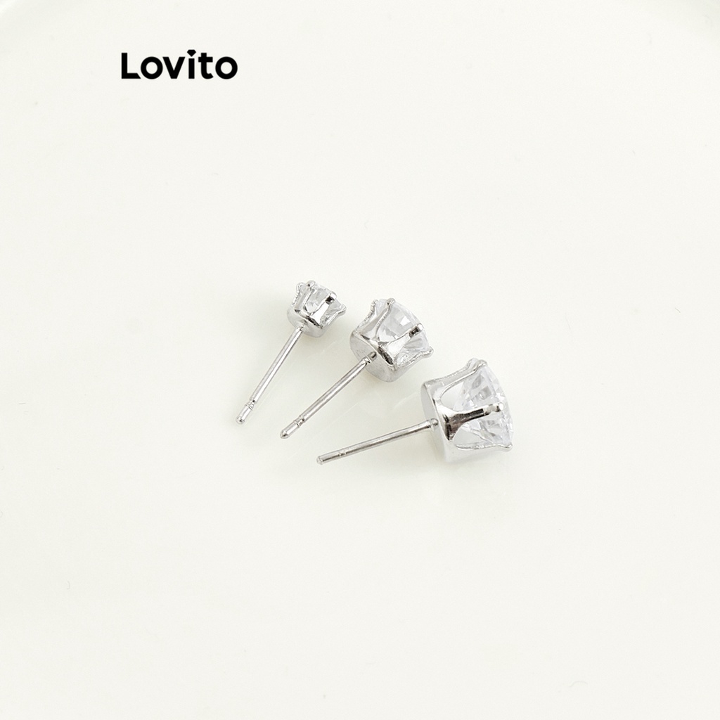 Lovito Bông tai nữ hình trái tim màu trơn phong cách thường ngày l63ad019 (màu bạc)