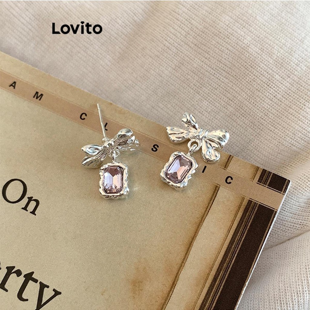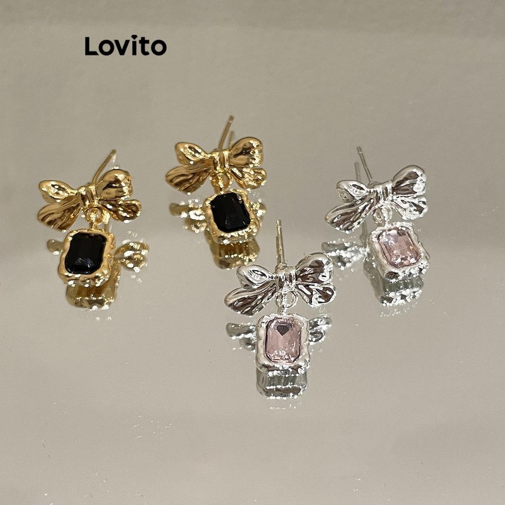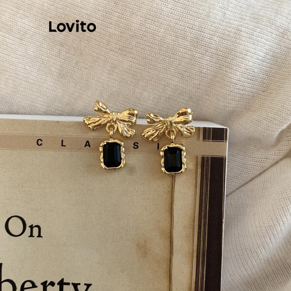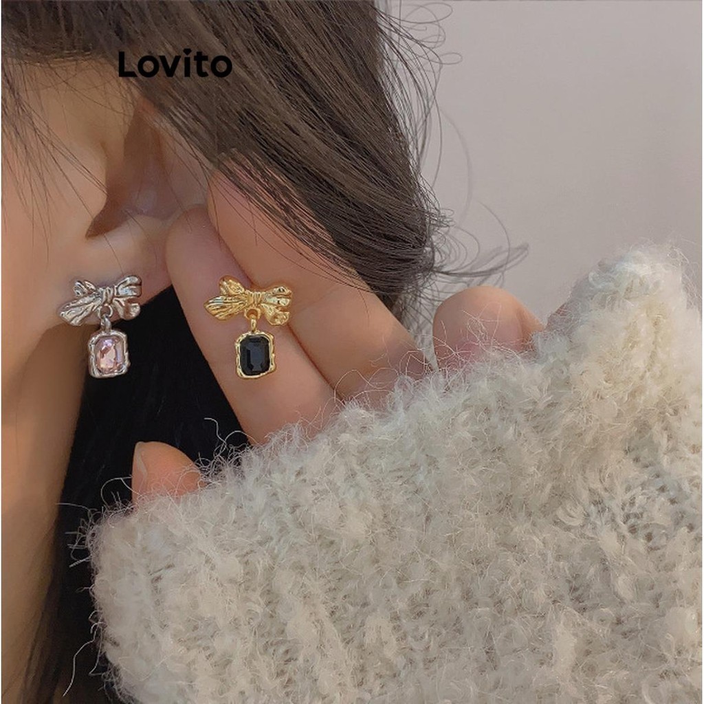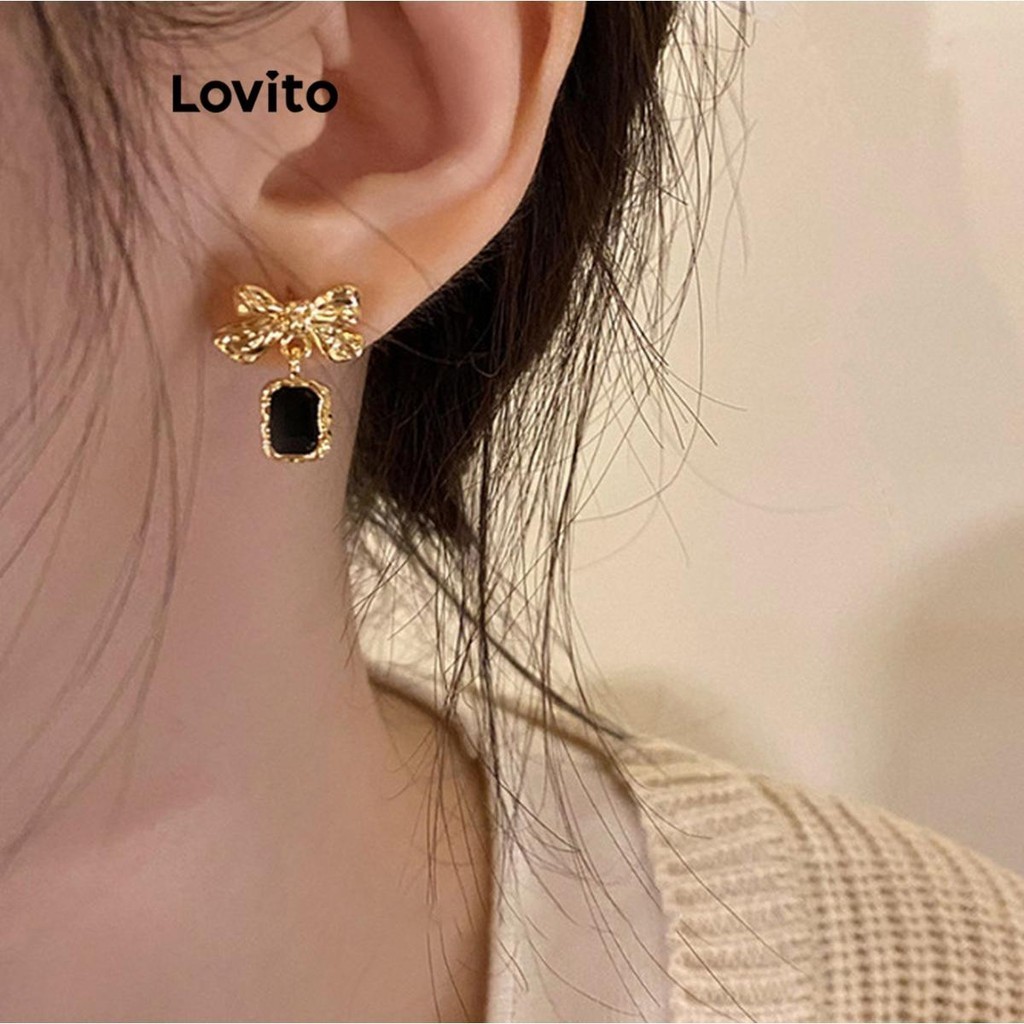 Lovito Bông tai ngọc trai hình học thanh lịch đơn giản cho nữ lfa27055