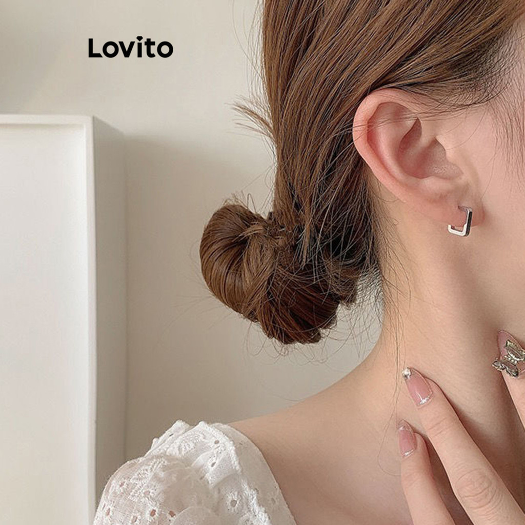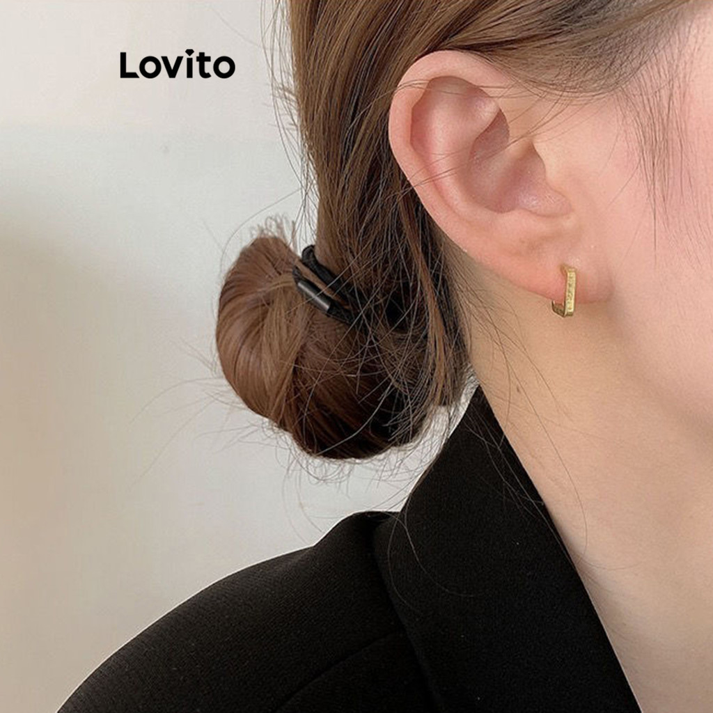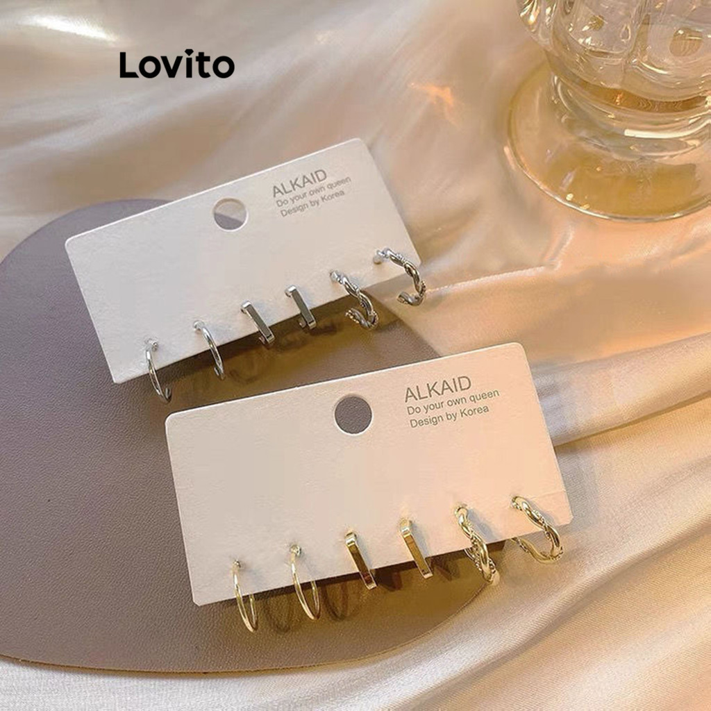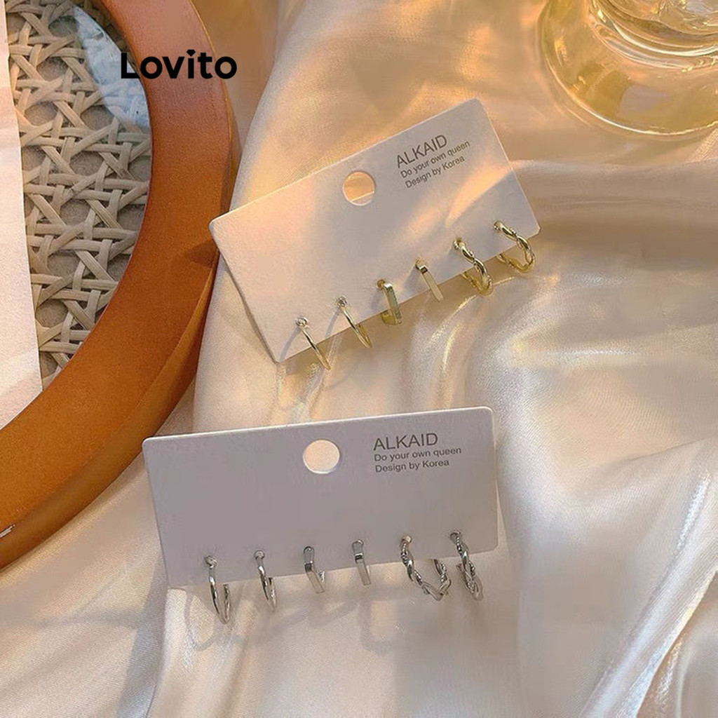 Lovito bông tai kim loại màu trơn thường ngày cho Nữ lfa01130 (Vàng/Bạc)