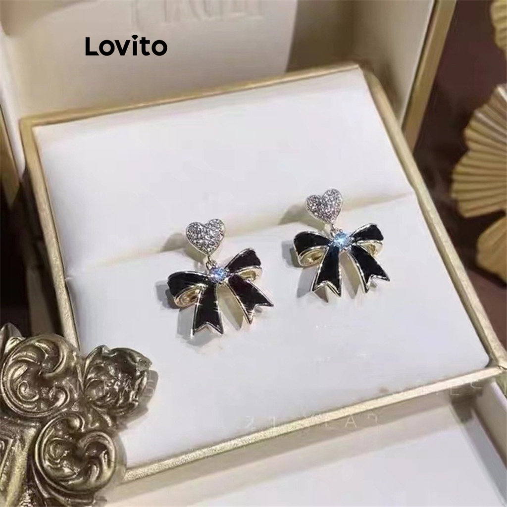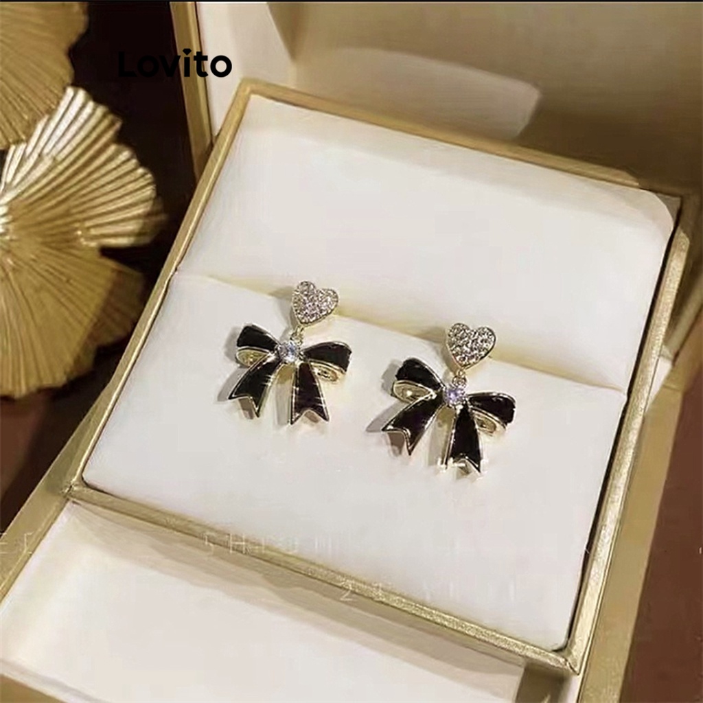 Lovito bông tai màu trơn phong cách đơn giản hình hoa nơ khối màu cho nữ lfa13397
