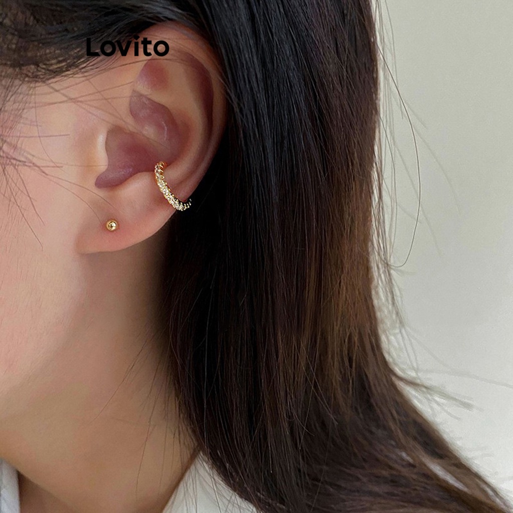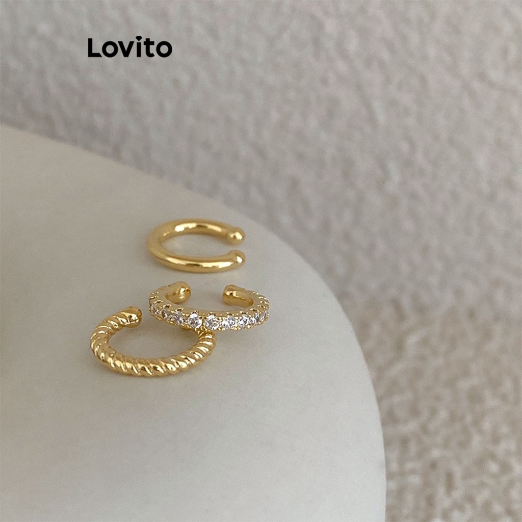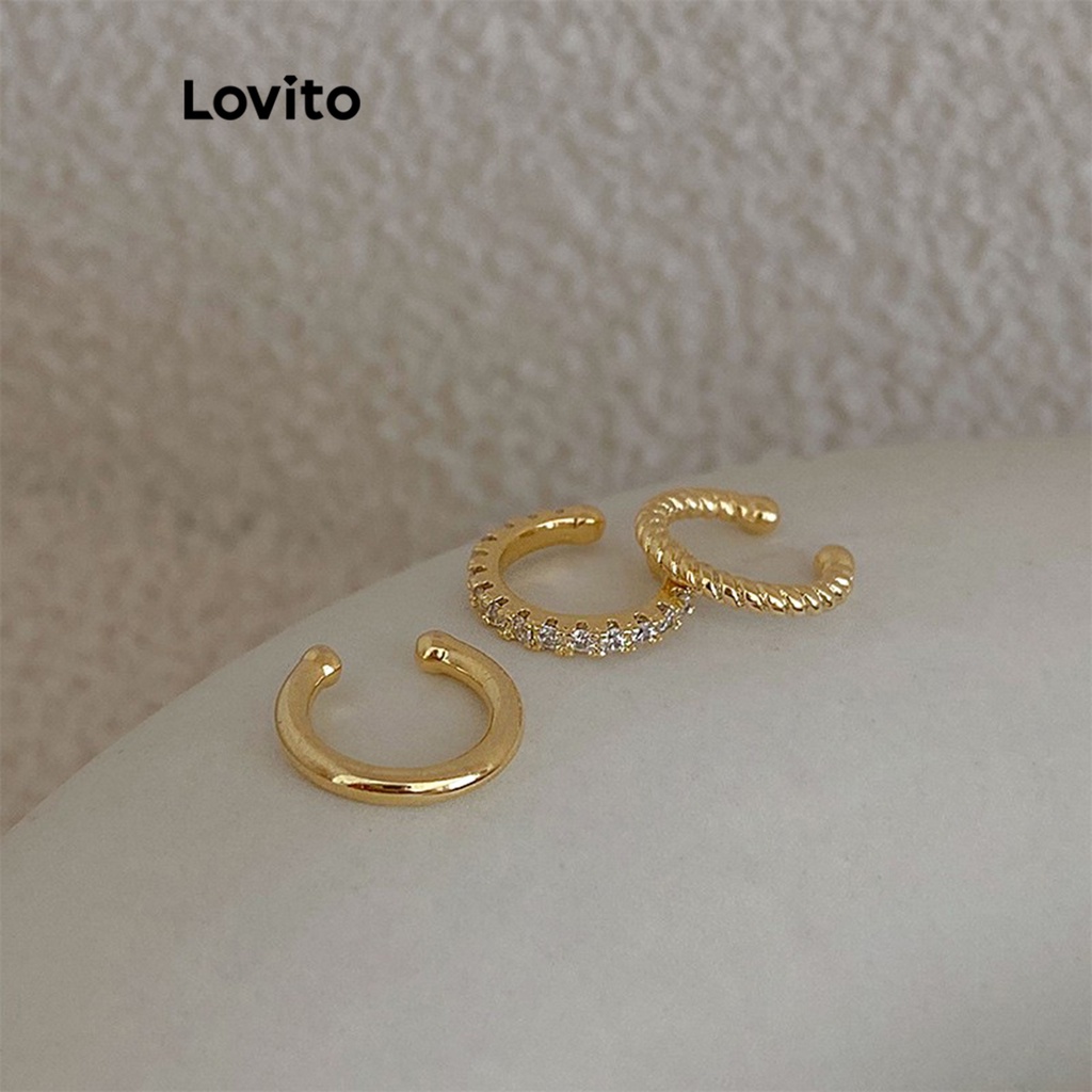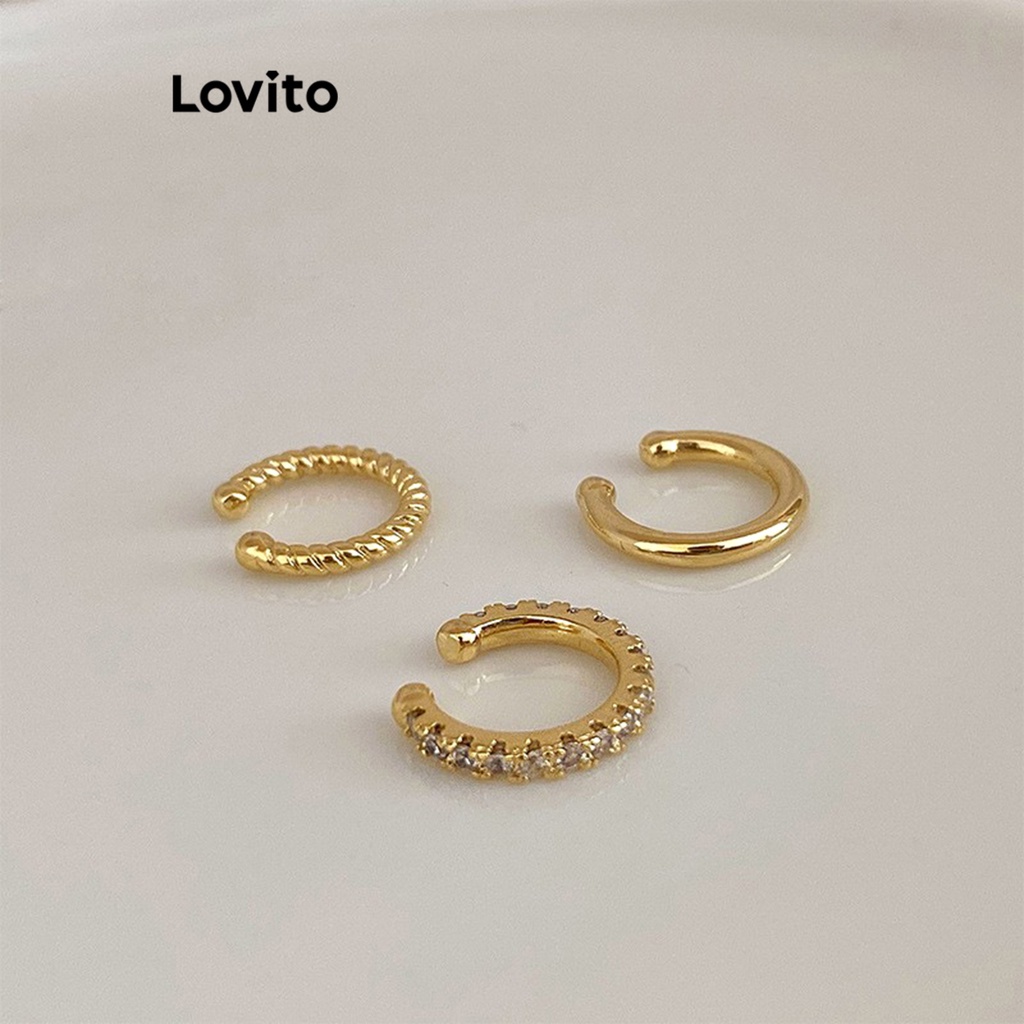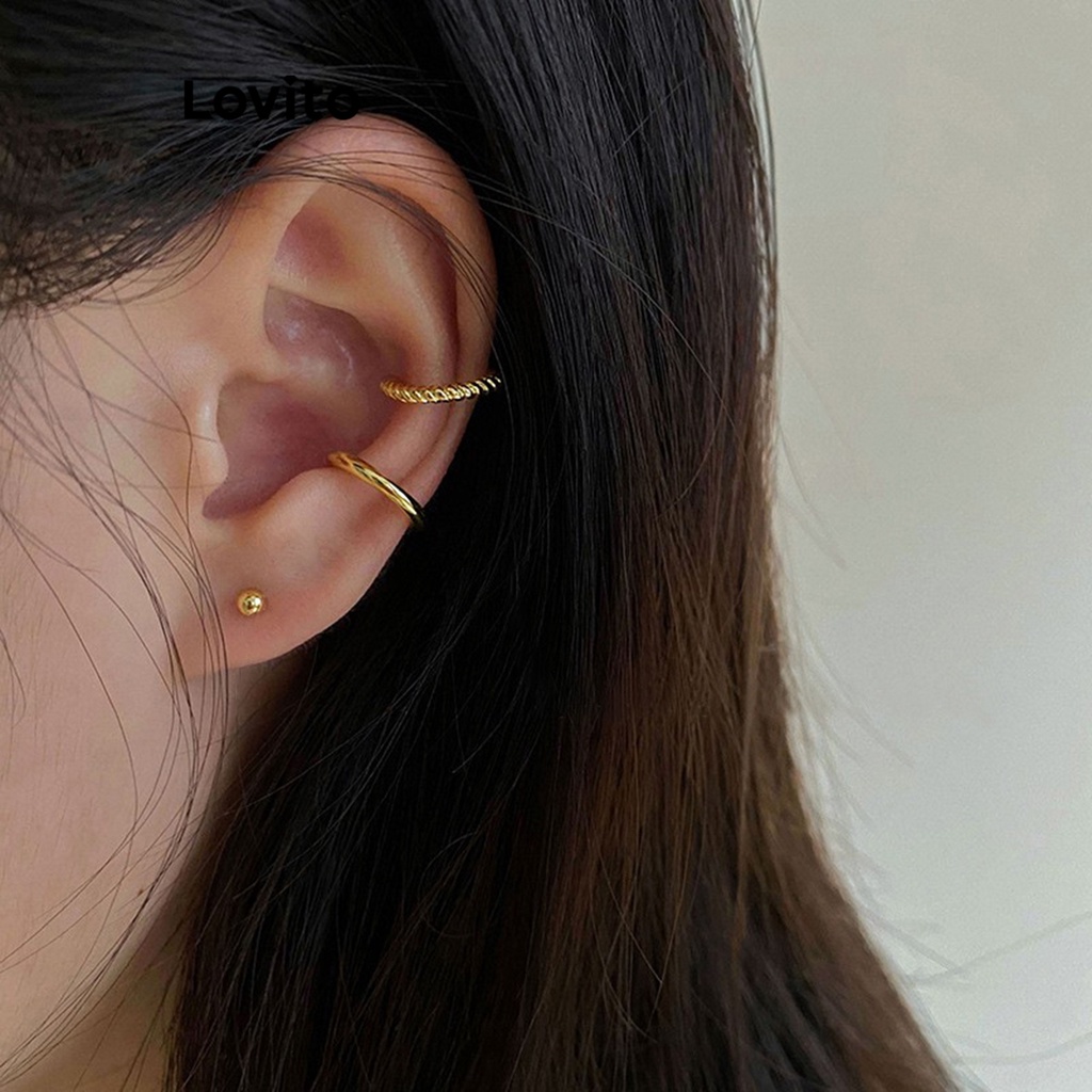 Lovito bông tai kim loại màu trơn thường ngày cho Nữ lfa01130 (Vàng/Bạc)