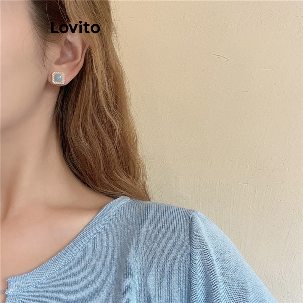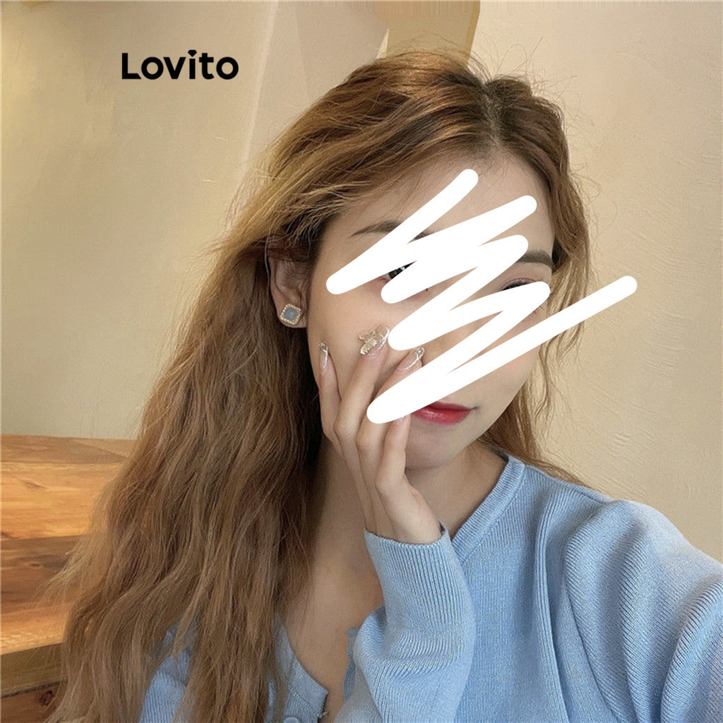 Lovito Bông tai dạng hạt kim loại đính nơ kim cương giả cho nữ lfa25182
