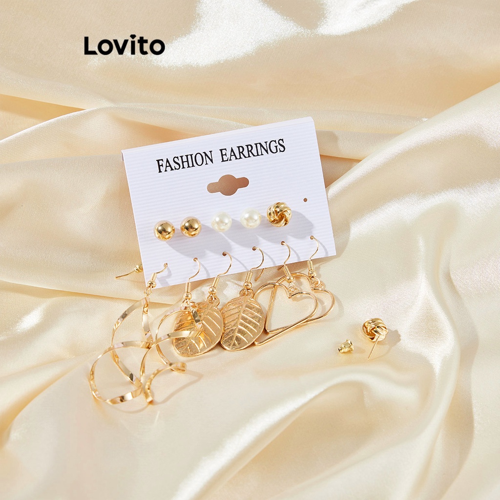 Lovito Bông Tai Nữ 6 bông tai ngọc trai hoa nơ màu trơn thanh lịch lfa16236