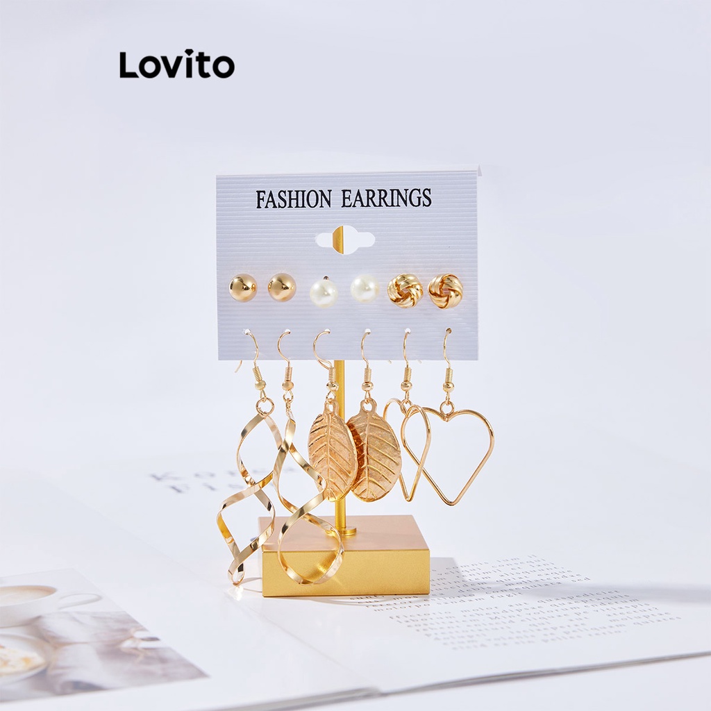 Lovito Bông tai ngọc trai hạt cườm hình học thường ngày cho Nữ l60ad025 (màu vàng kim)