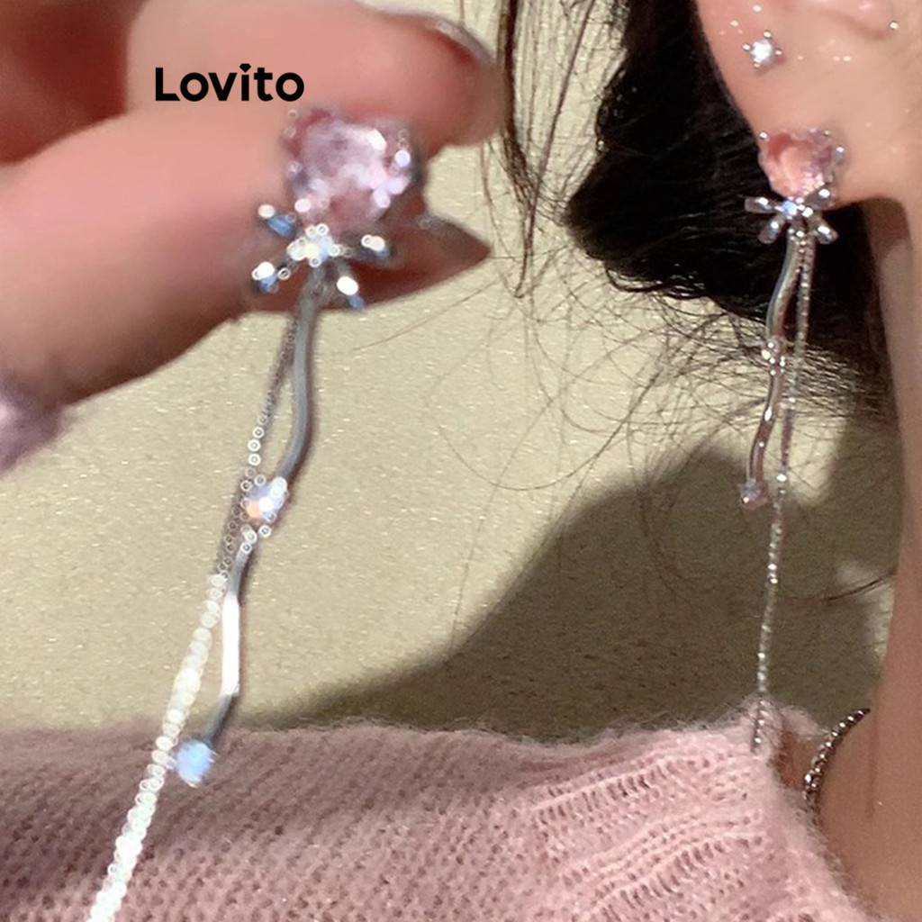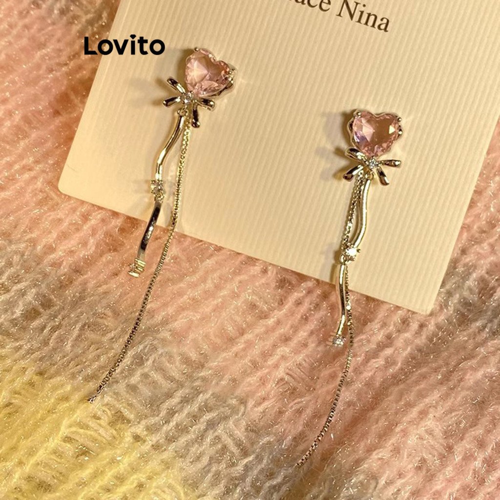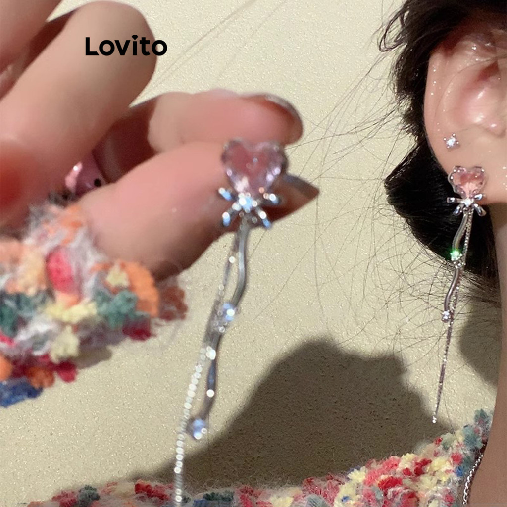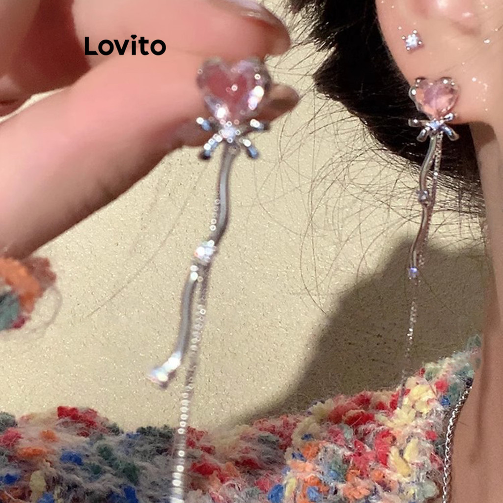 Lovito Bông tai đính đá hình trái tim Mặt dây chuyền nơ cho nữ lfa11557