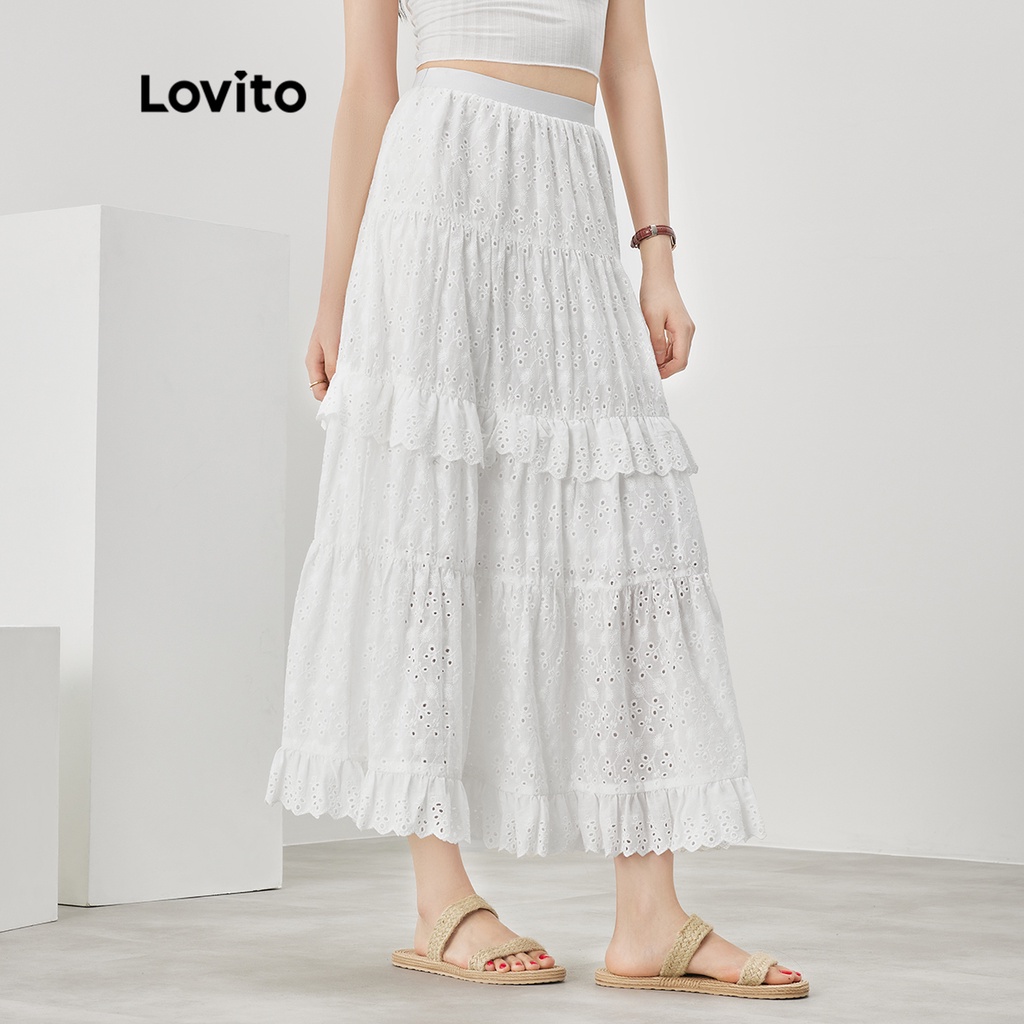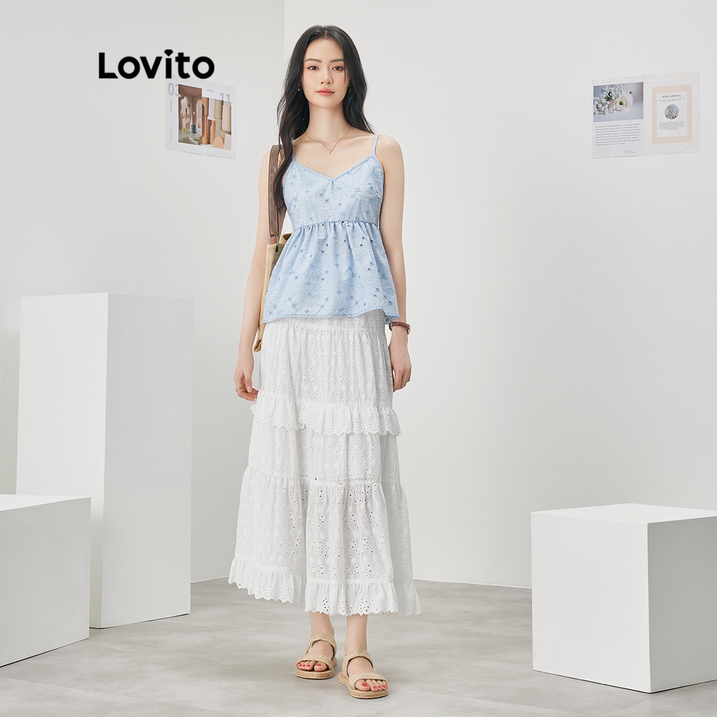 Lovito lne09166 Chân Váy Xếp Li Dài hoa thường ngày cho Nữ (Nhiều màu)
