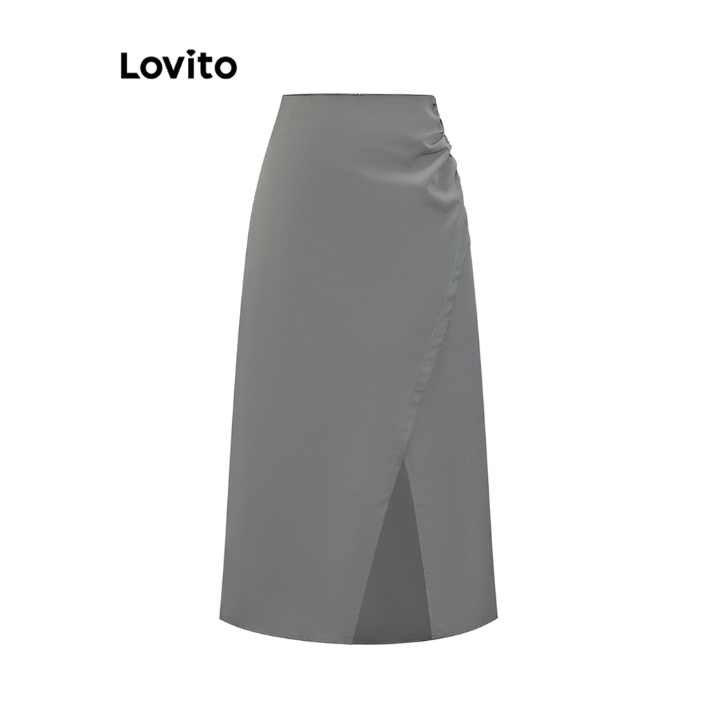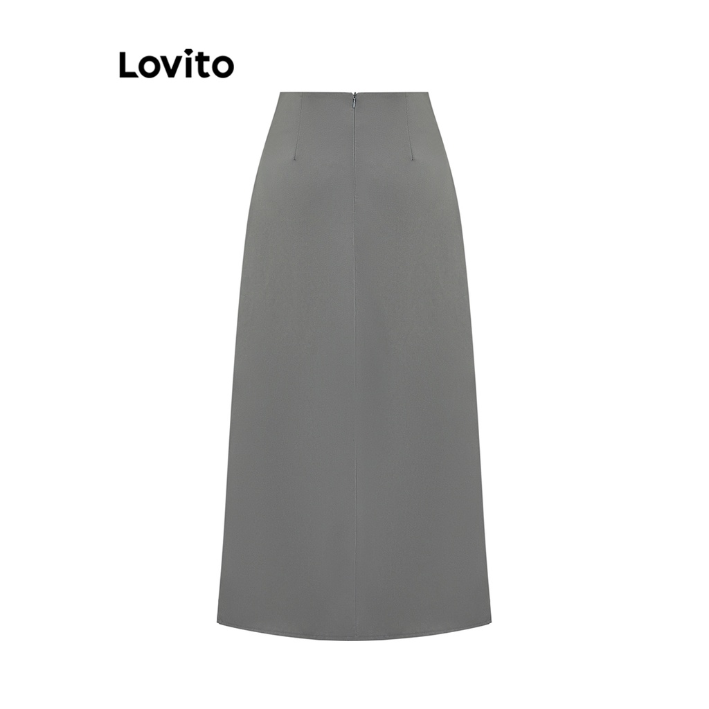 Lovito Chân Váy trơn có cúc phía trước có khóa kéo cho nữ l47ed090 (Màu Kaki)