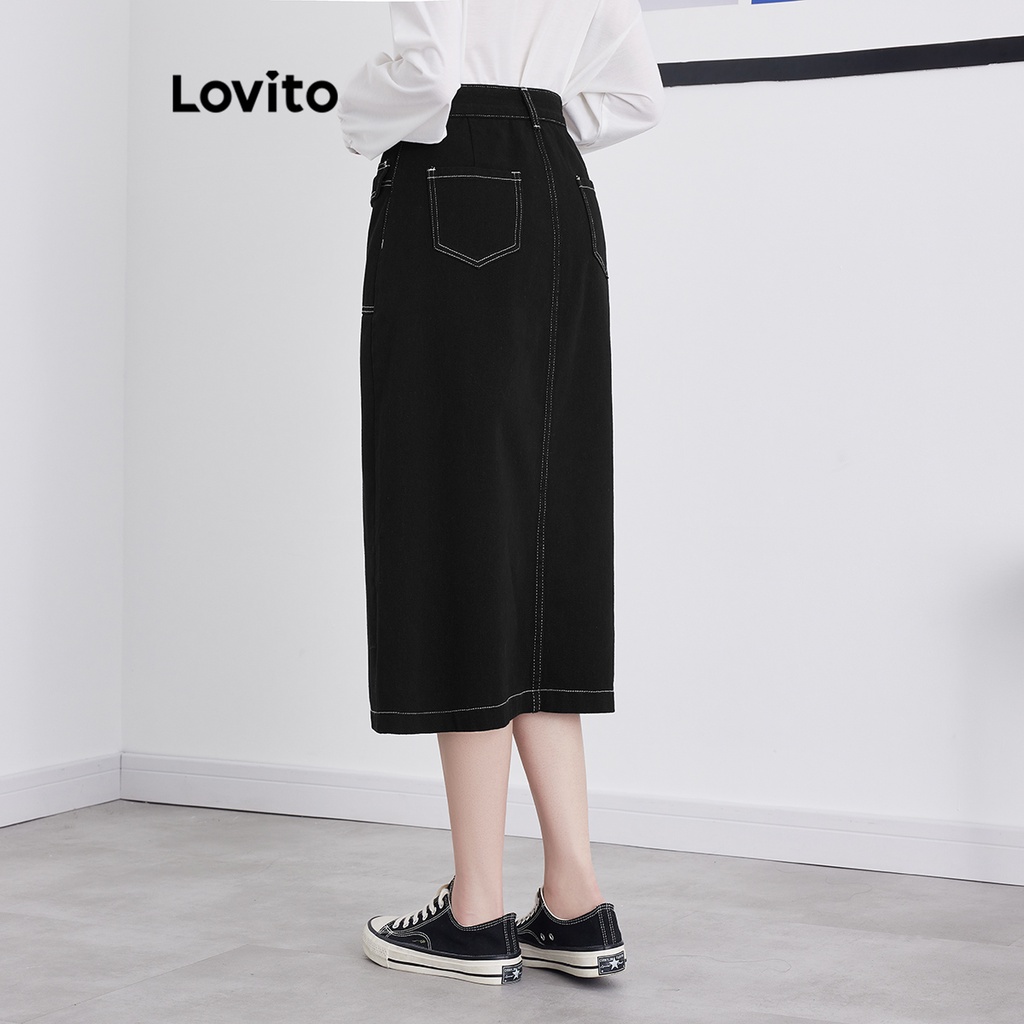 Lovito váy công cụ cơ bản màu trơn thường ngày cho Nữ l49ad093 (Màu Đen)
