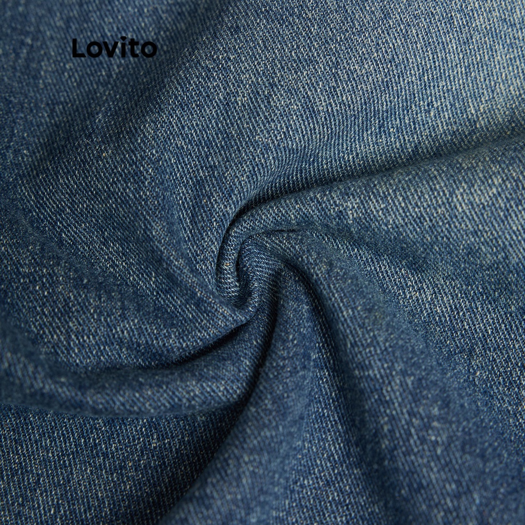 Lovito váy denim nữ có cúc chữ A màu trơn thường ngày l47ad059 (màu xanh dương)