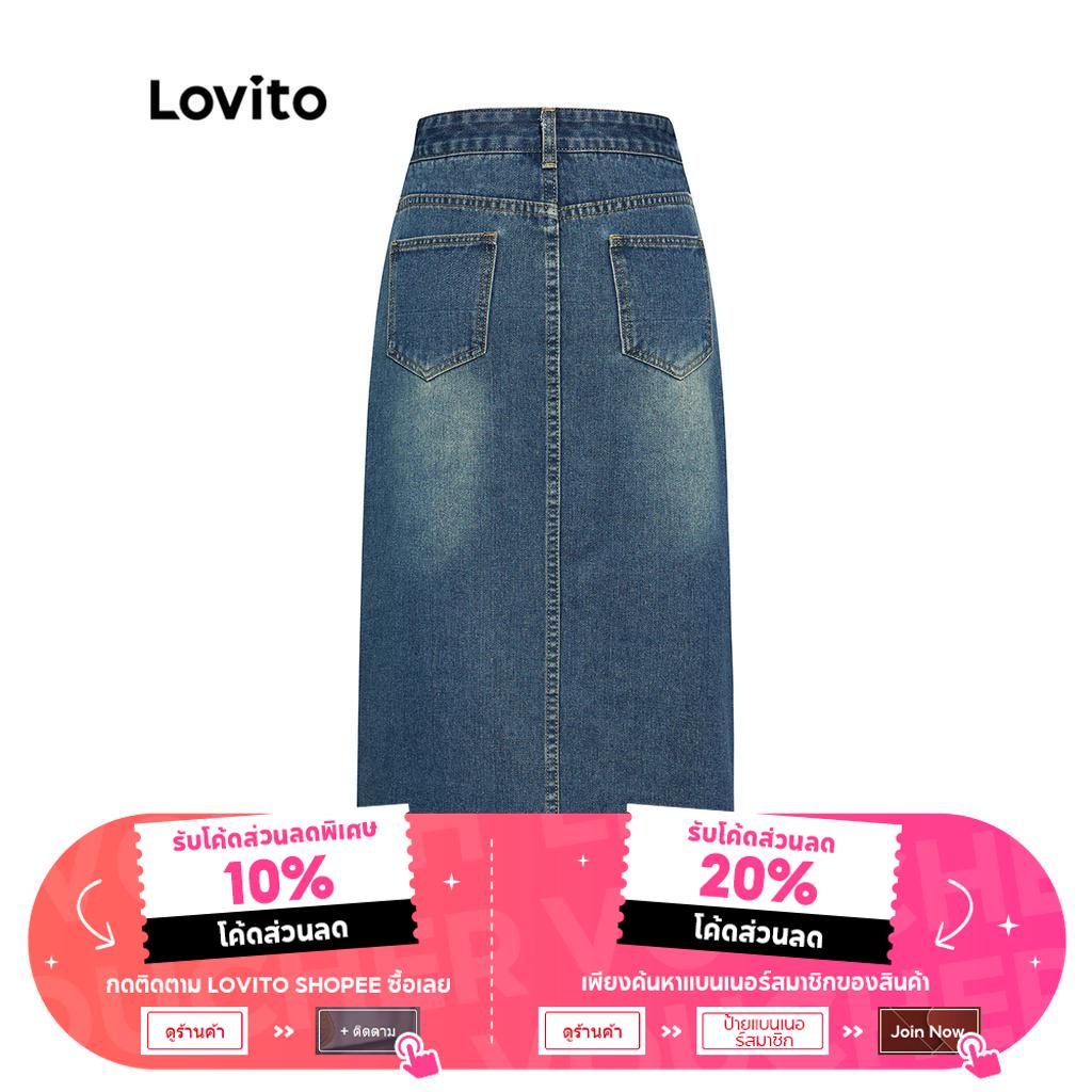 Lovito Chân Váy Denim xẻ tà phía trước có túi màu trơn thường ngày cho Nữ lna17135 (màu xanh dương)