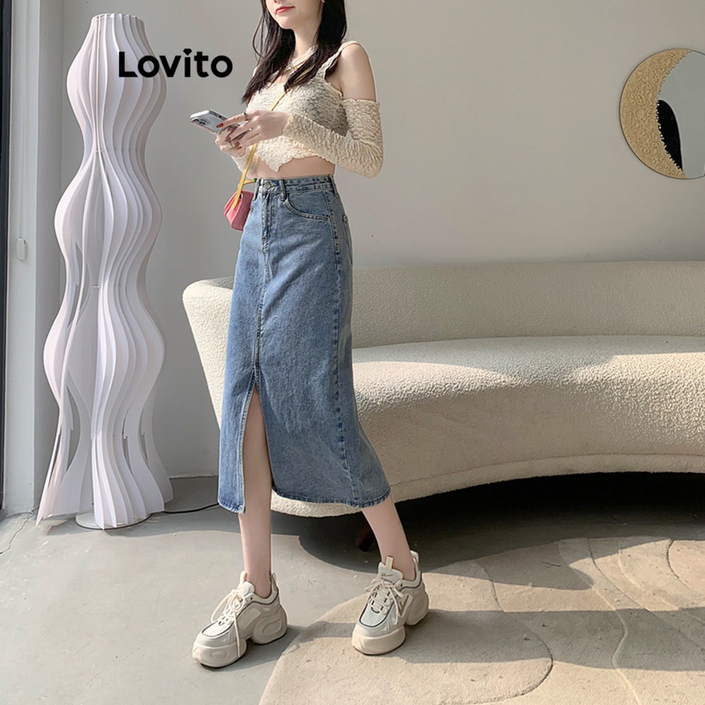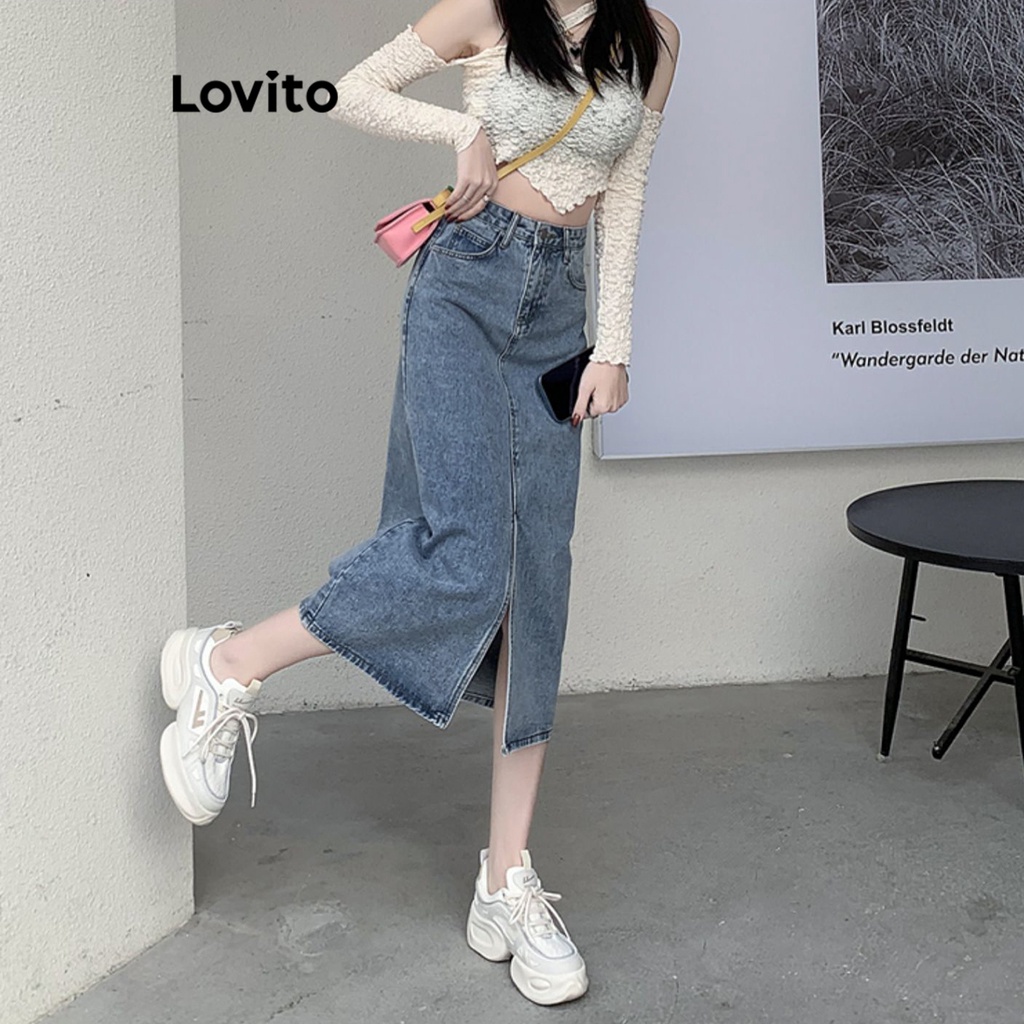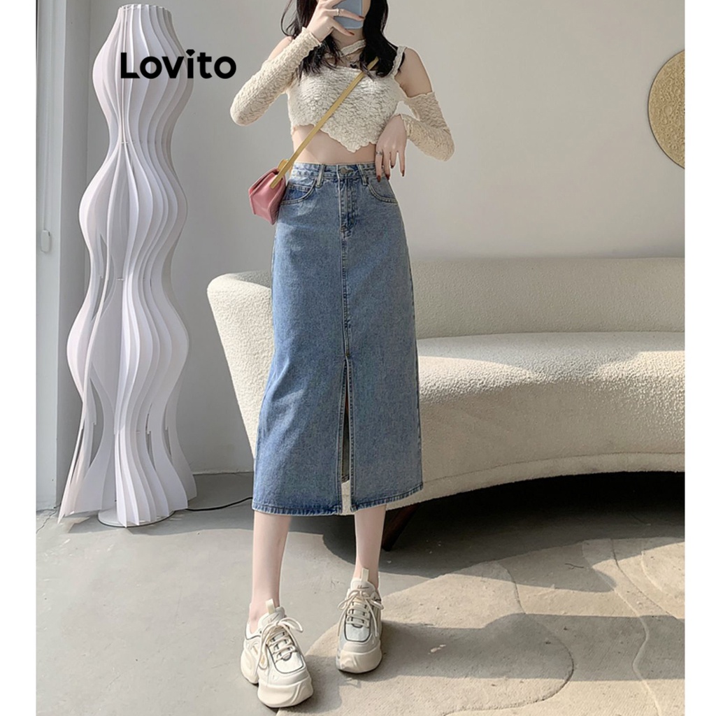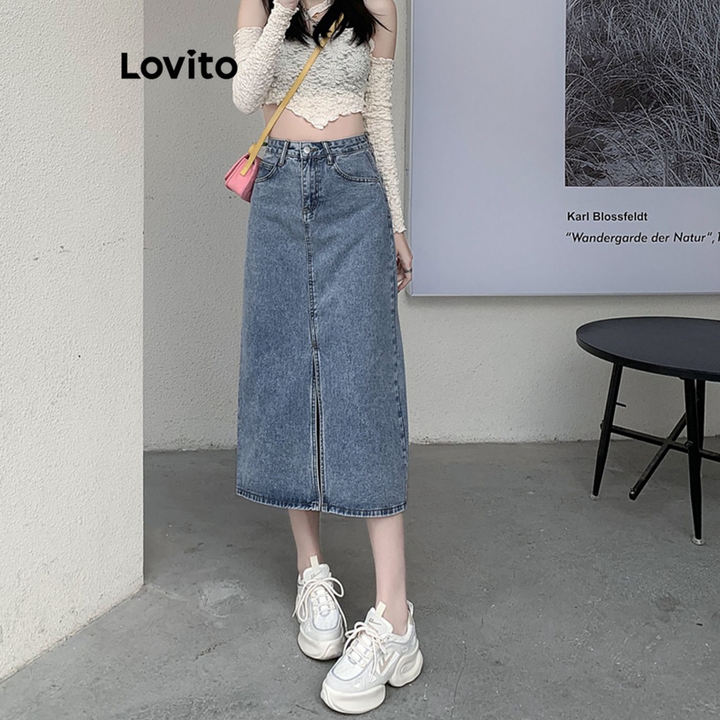 Lovito váy có cúc khóa kéo màu trơn thường ngày cho Nữ l49ad096 (Nhiều màu)