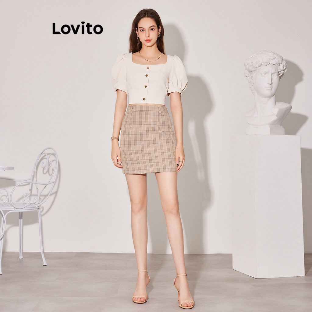 Lovito váy có cúc khóa kéo màu trơn thường ngày cho Nữ l49ad096 (Nhiều màu)
