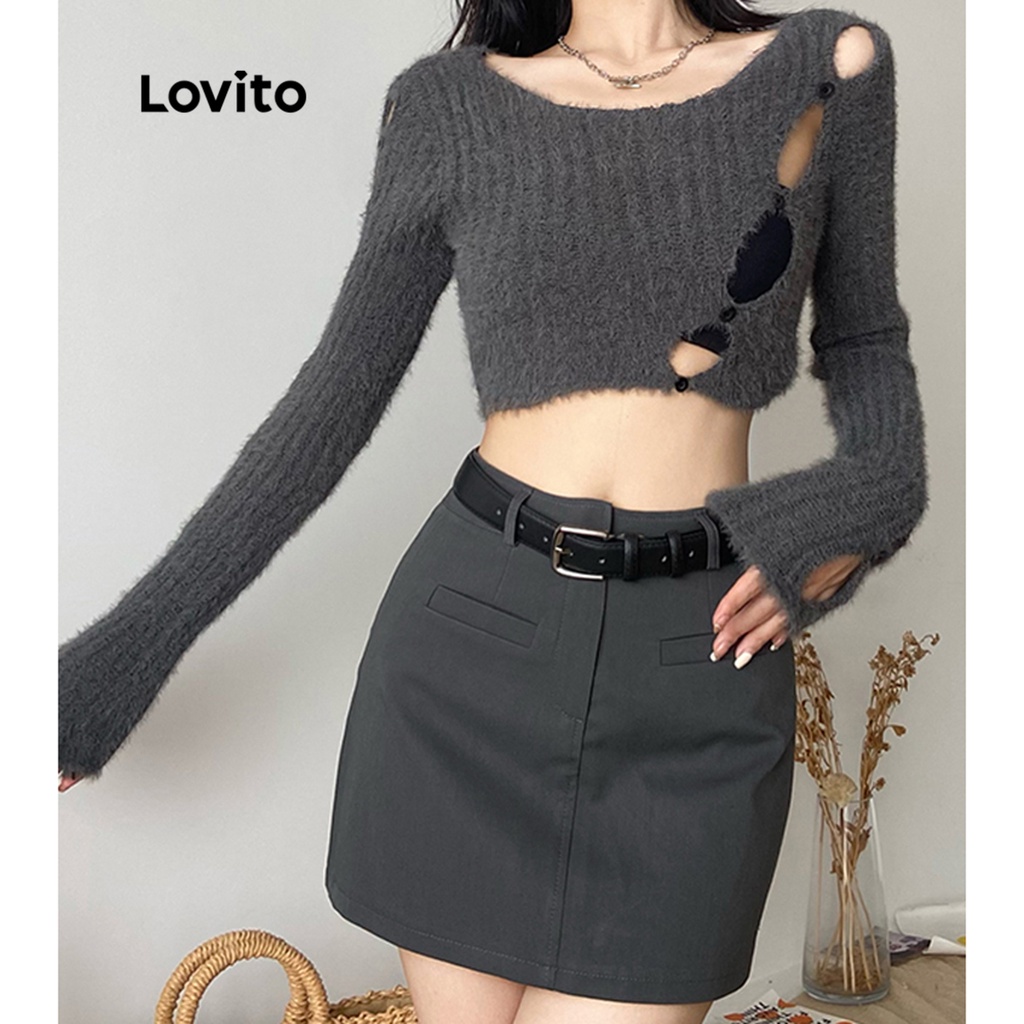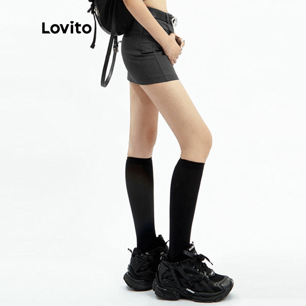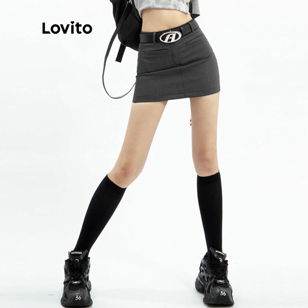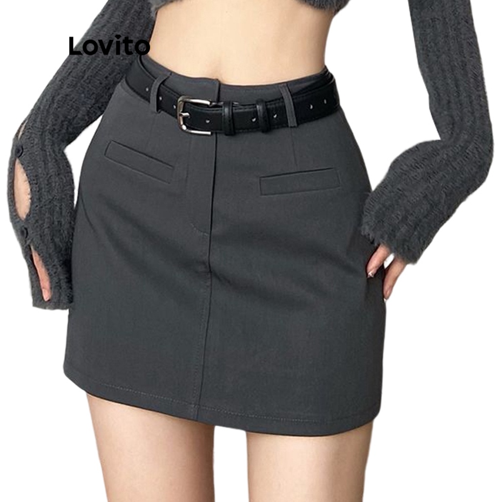 Lovito váy có cúc khóa kéo màu trơn thường ngày cho Nữ l49ad096 (Nhiều màu)