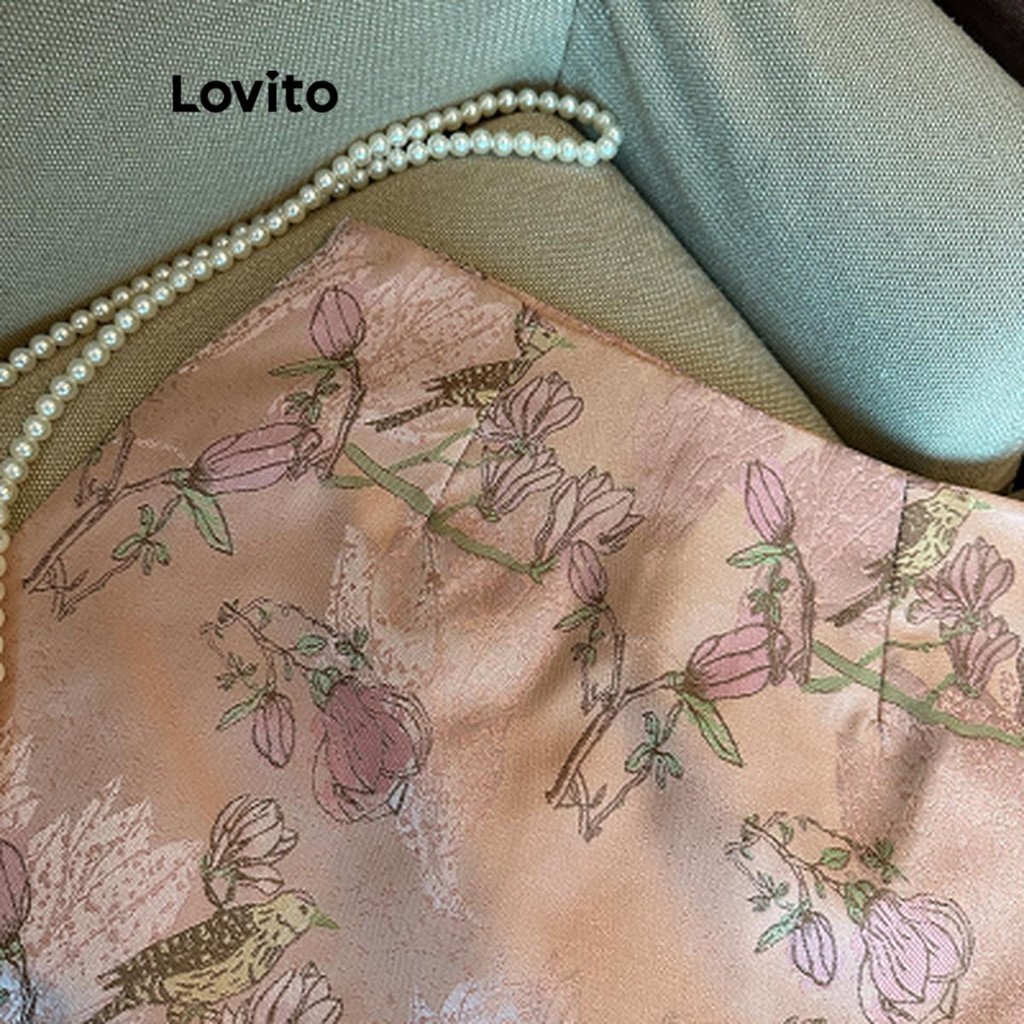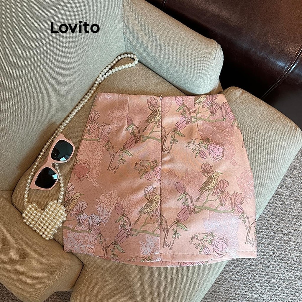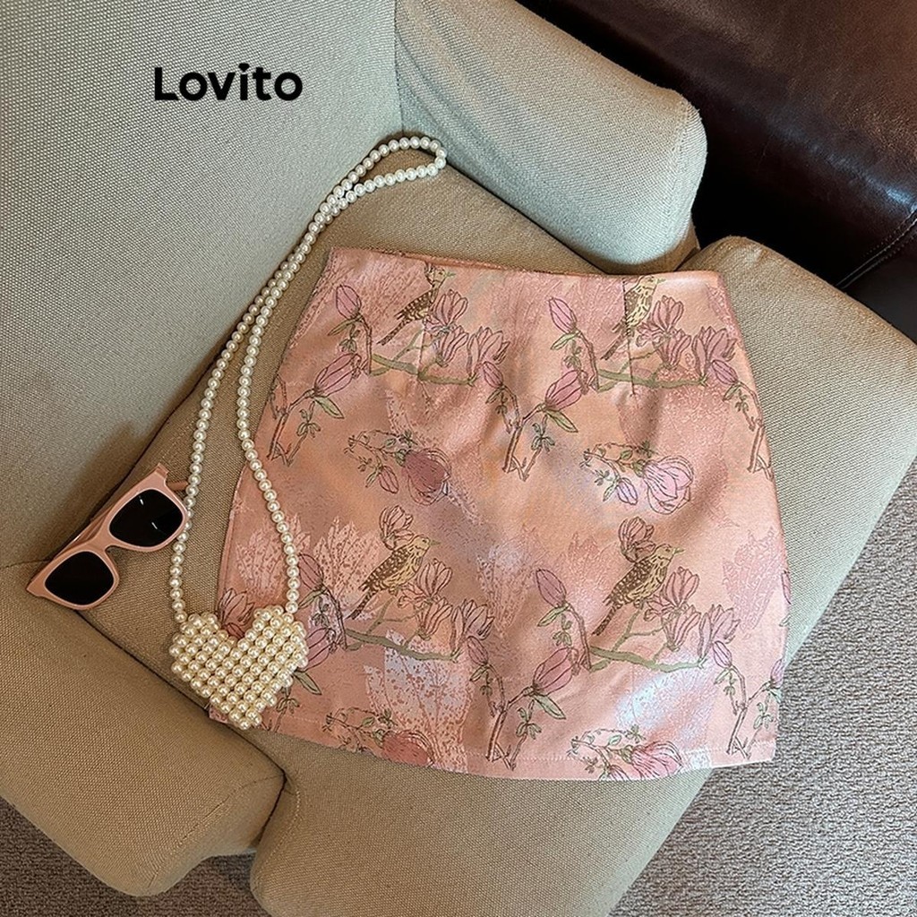 Lovito Chân váy nữ thường ngày xếp li xếp ly nhiệt đới lbl08213 (Nhiều màu)