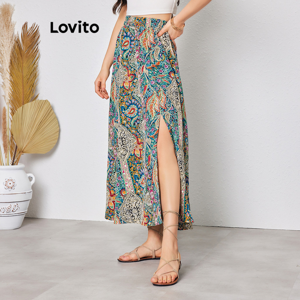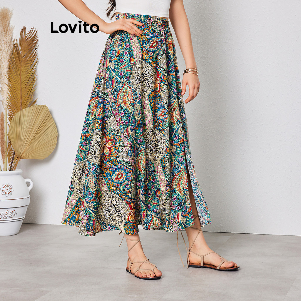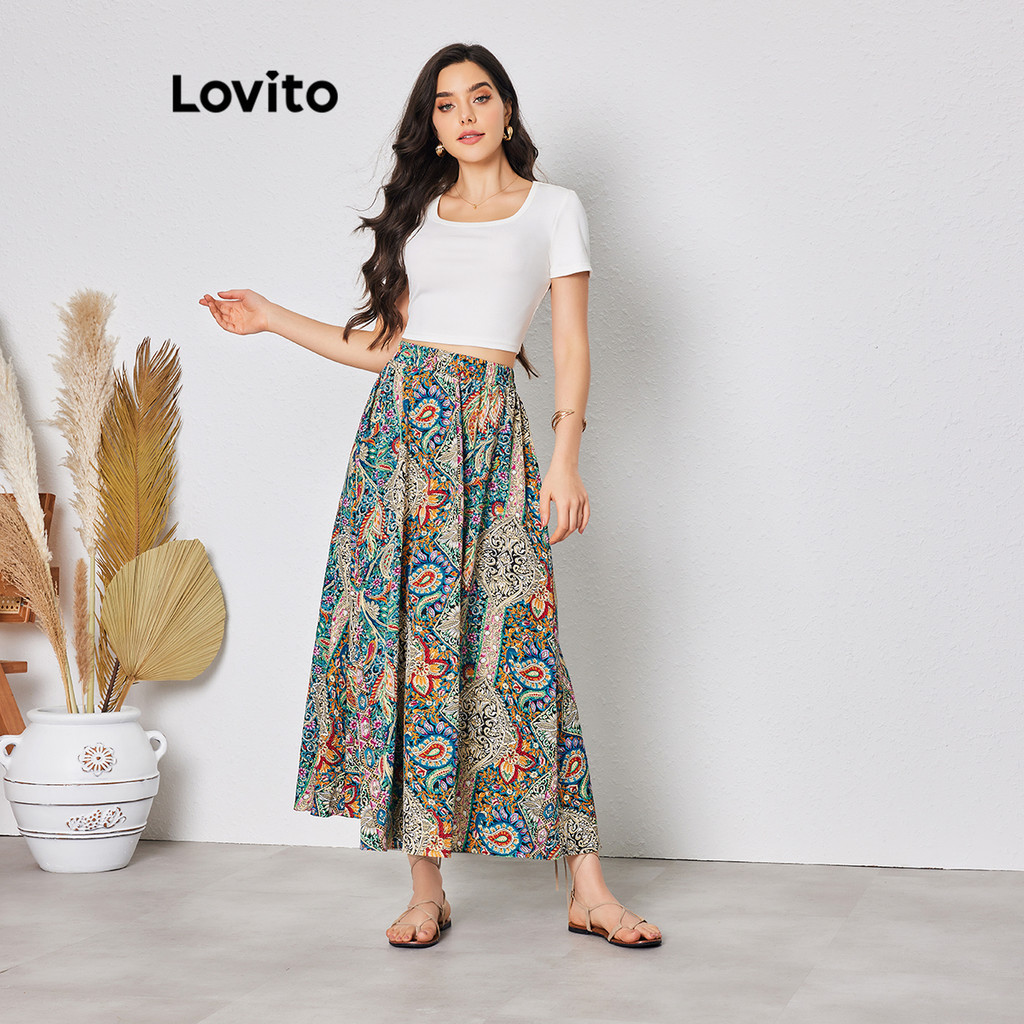 Lovito Váy thường ngày trơn viền bất đối xứng xếp li cho nữ l77ed088 (Nhiều màu)