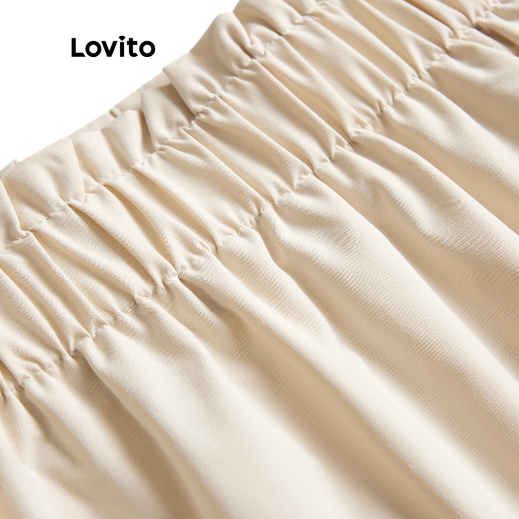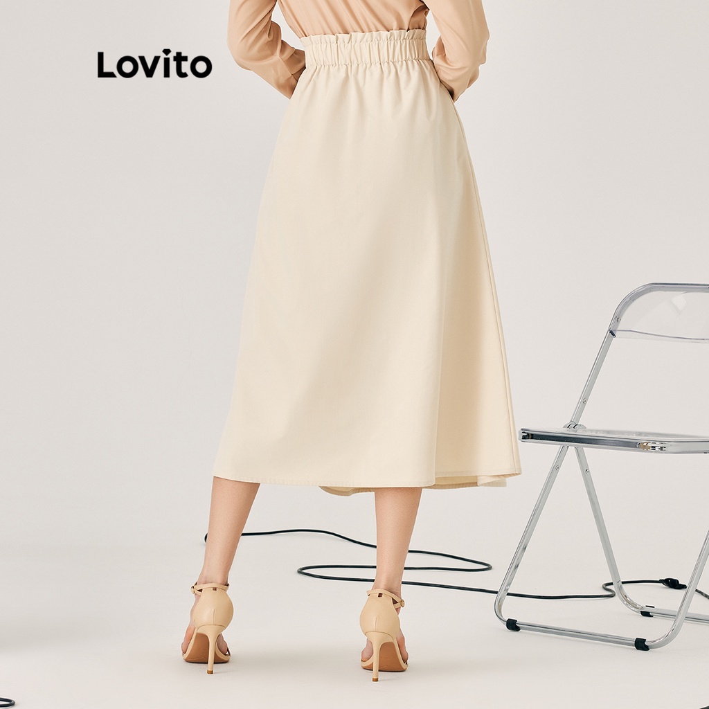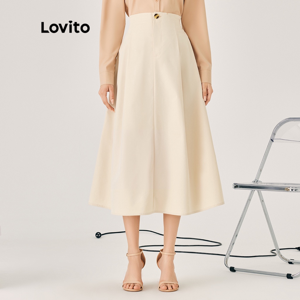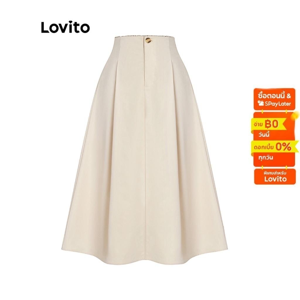Lovito Chân Váy Chữ A Xếp Nếp Boho màu trơn cho nữ l52ad142 (Màu Trắng)