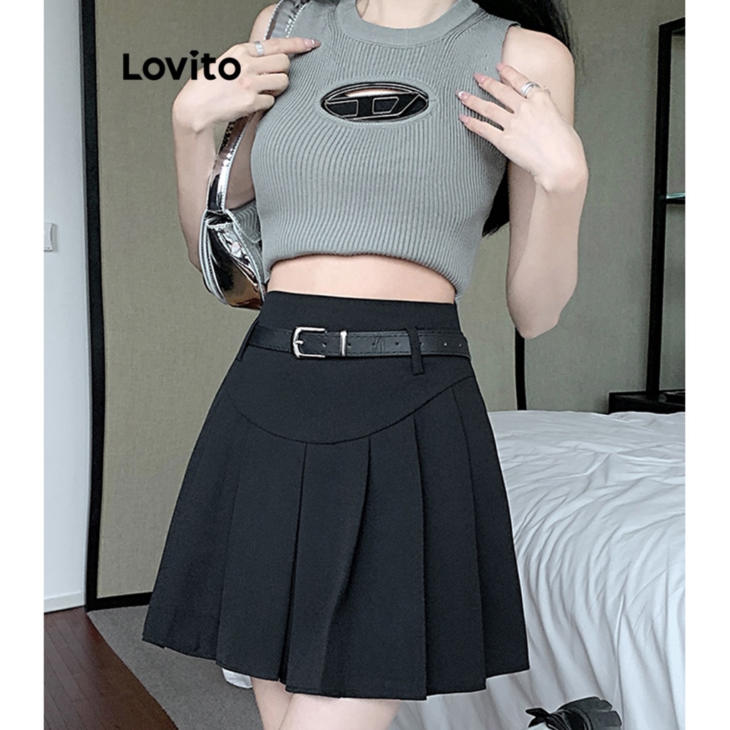 Lovito váy thắt lưng màu trơn thường ngày cho Nữ lna21057 (Nhiều màu)