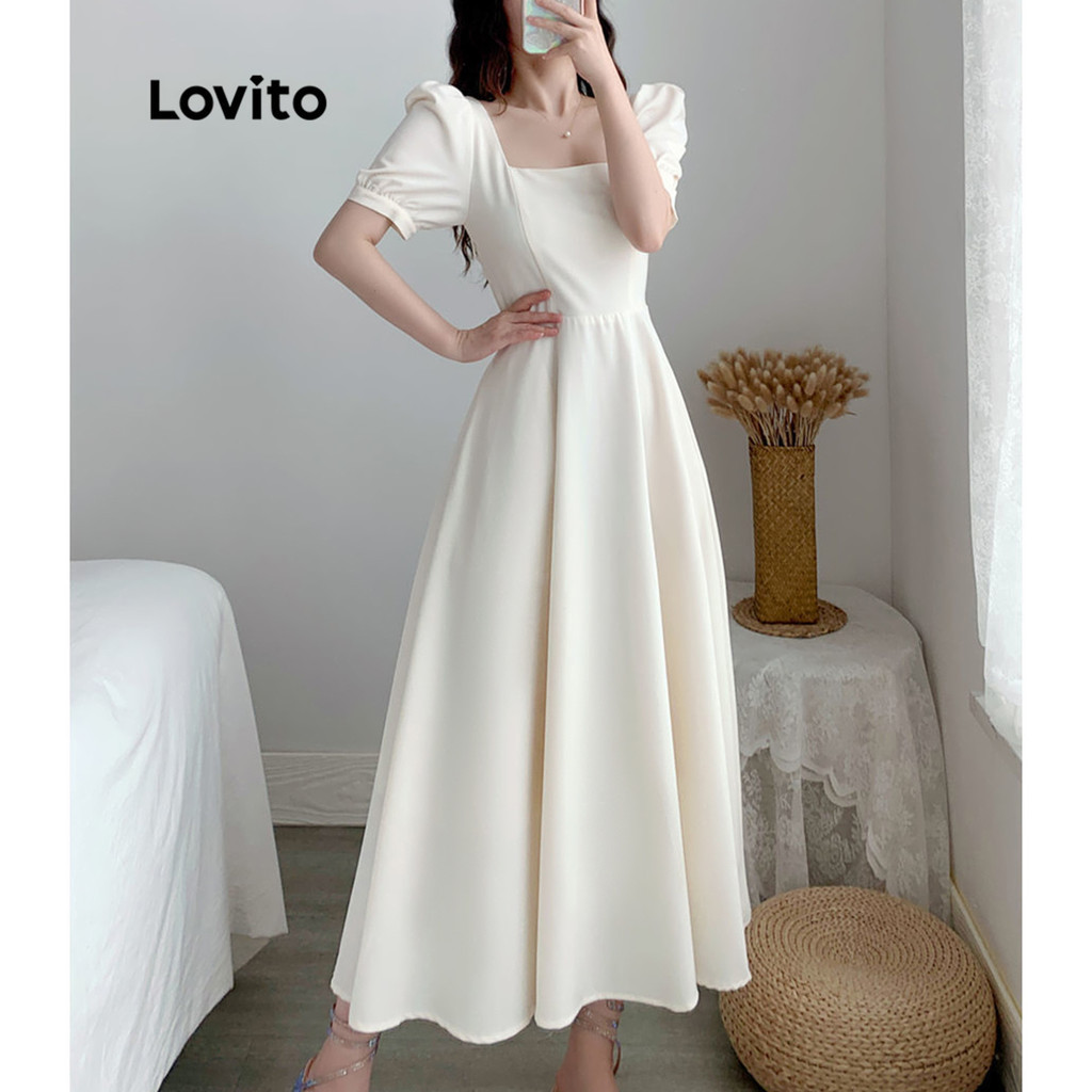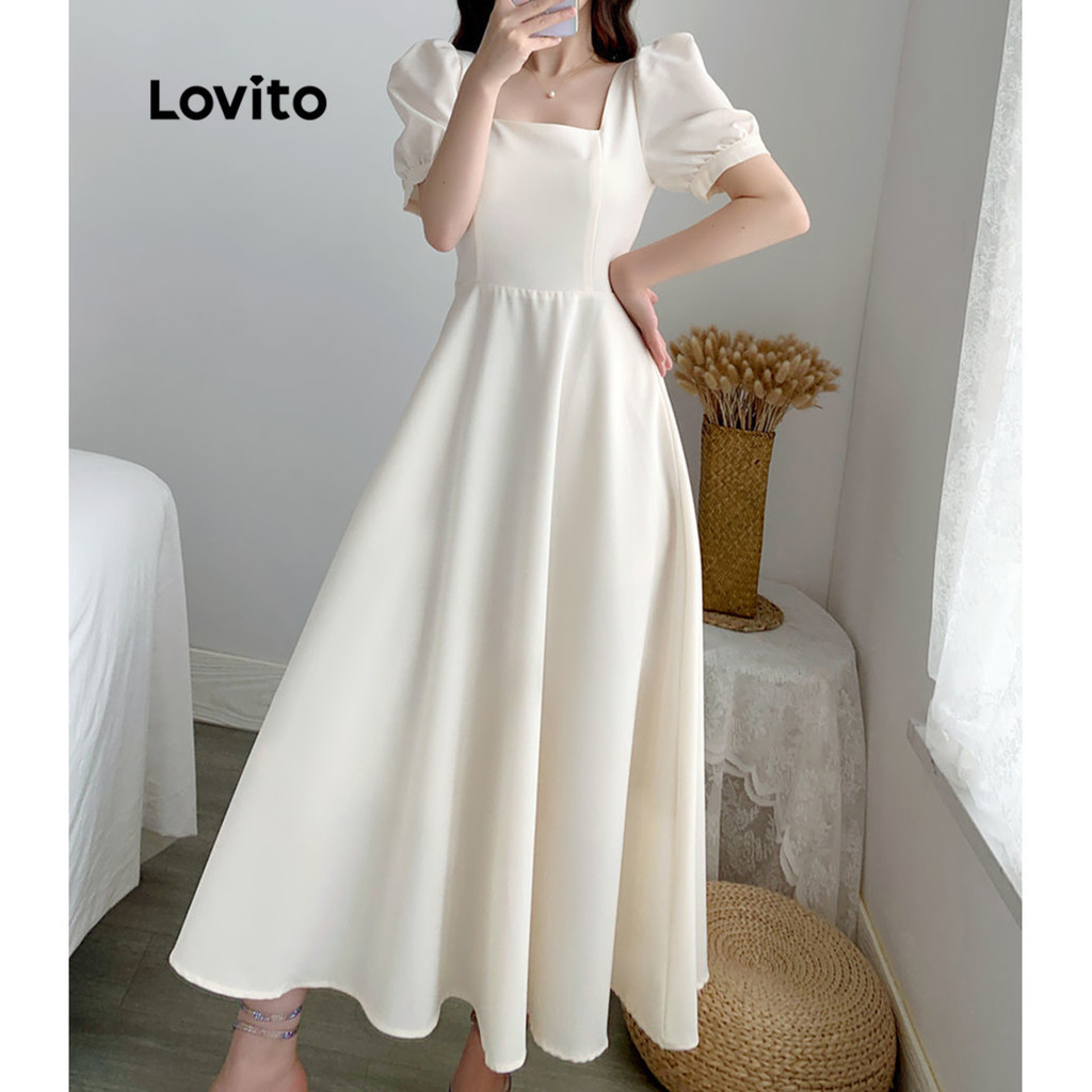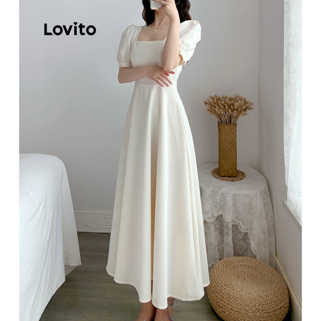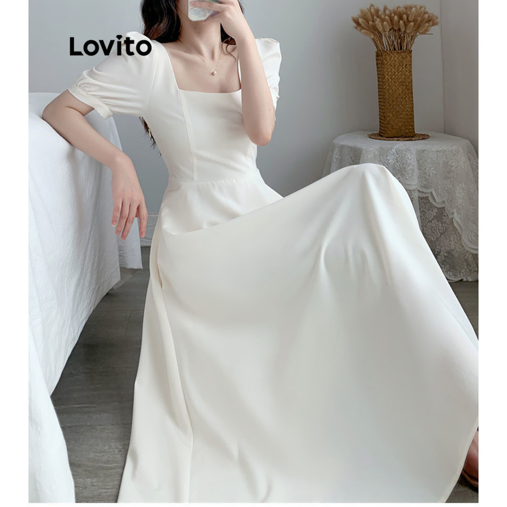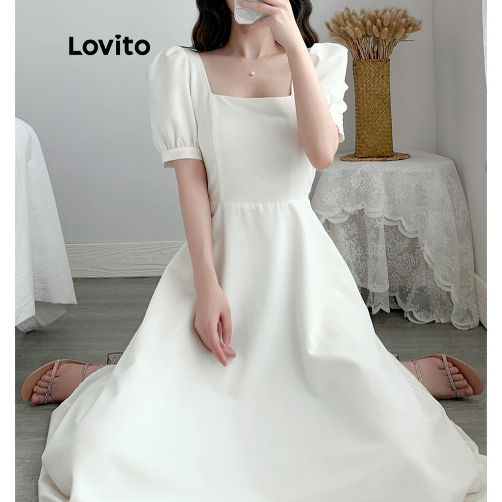Lovito Đầm thường ngày màu trơn cổ tròn không tay cho nữ lna03038 (Màu Trắng)