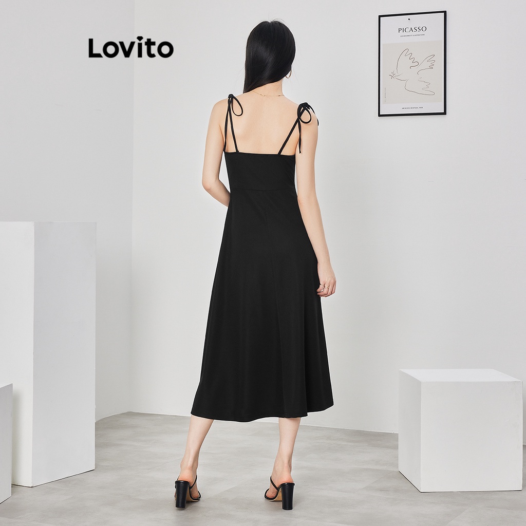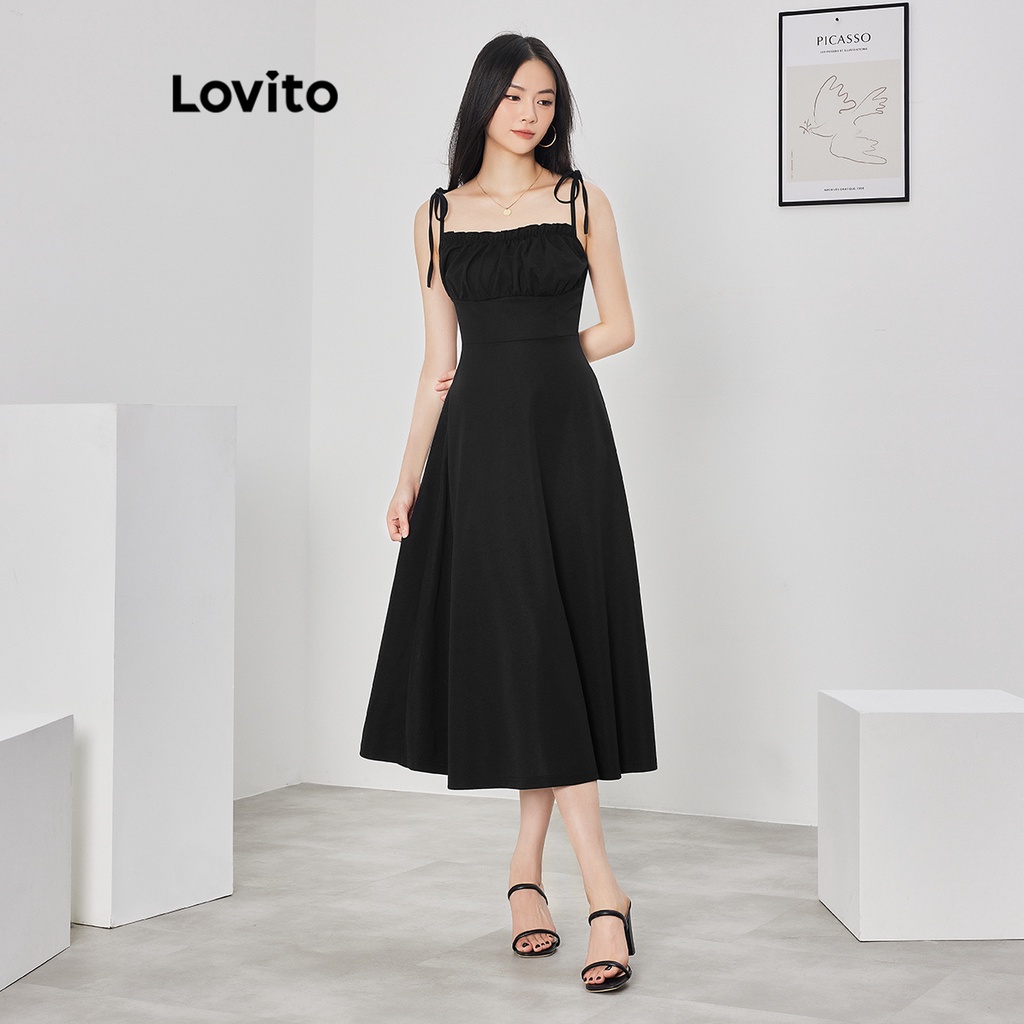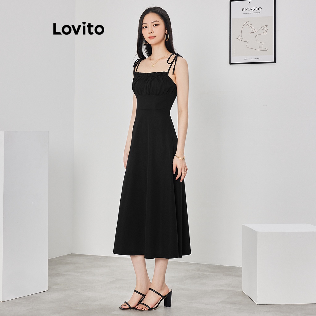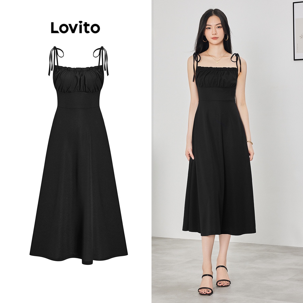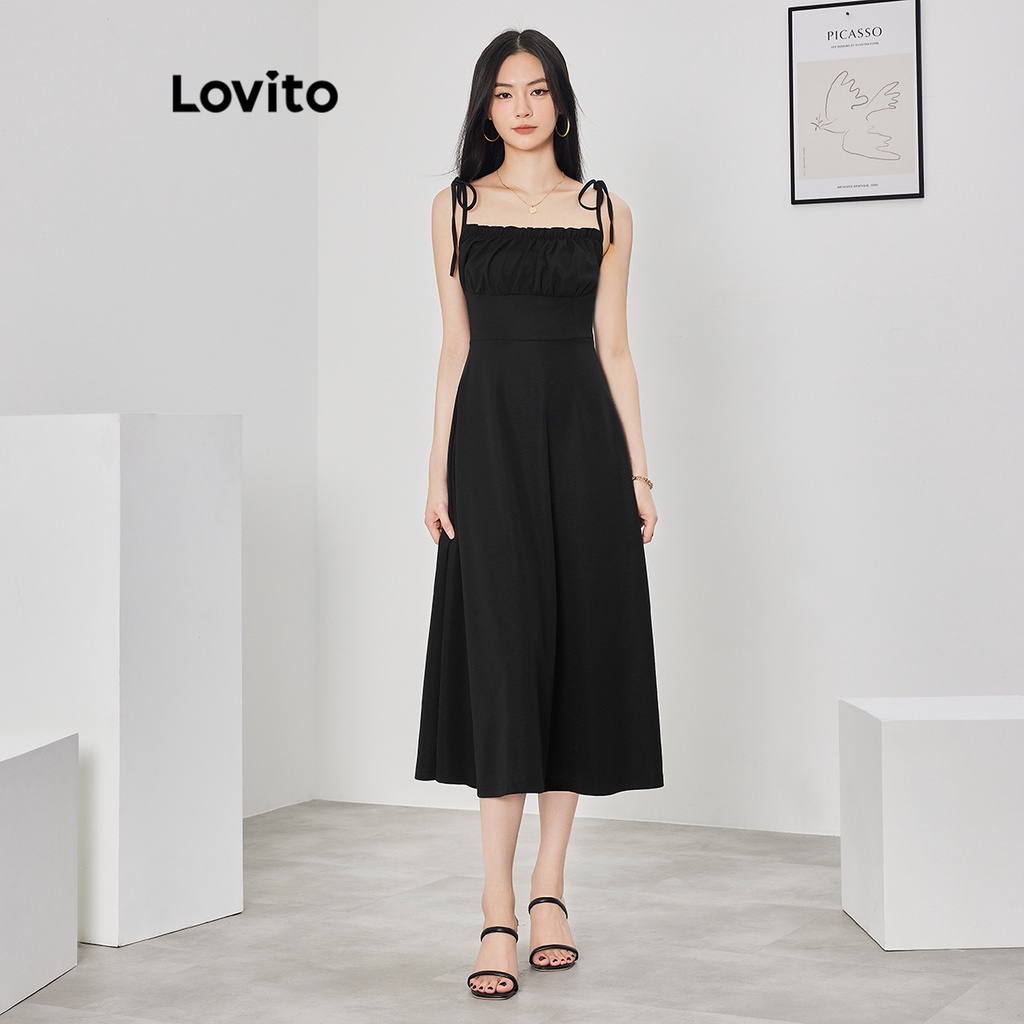 Lovito Đầm xếp ly tay bèo nhún buộc dây thường ngày cho Nữ lne16026 (Nhiều màu)