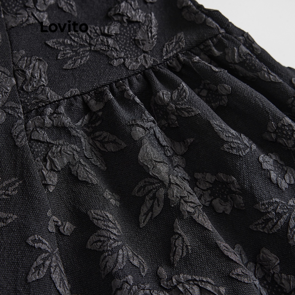Lovito Đầm dáng chữ A màu trơn thường ngày cho Nữ lne16205 (Màu Đen)
