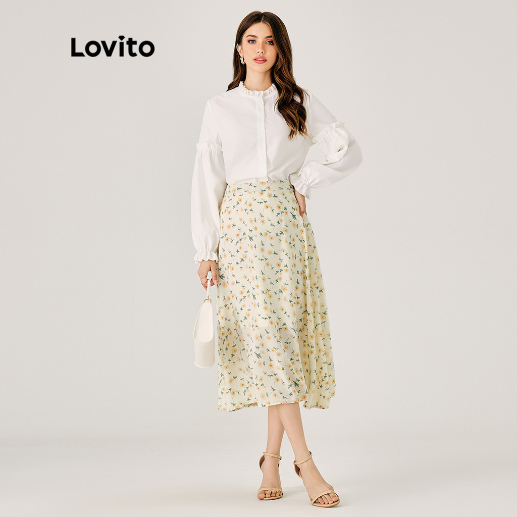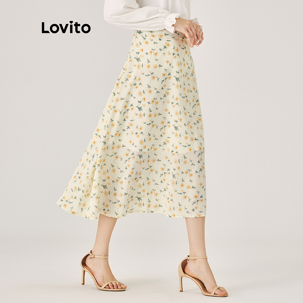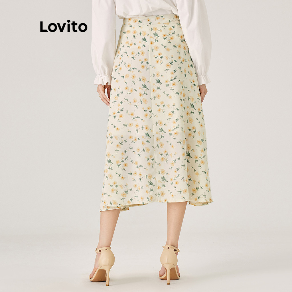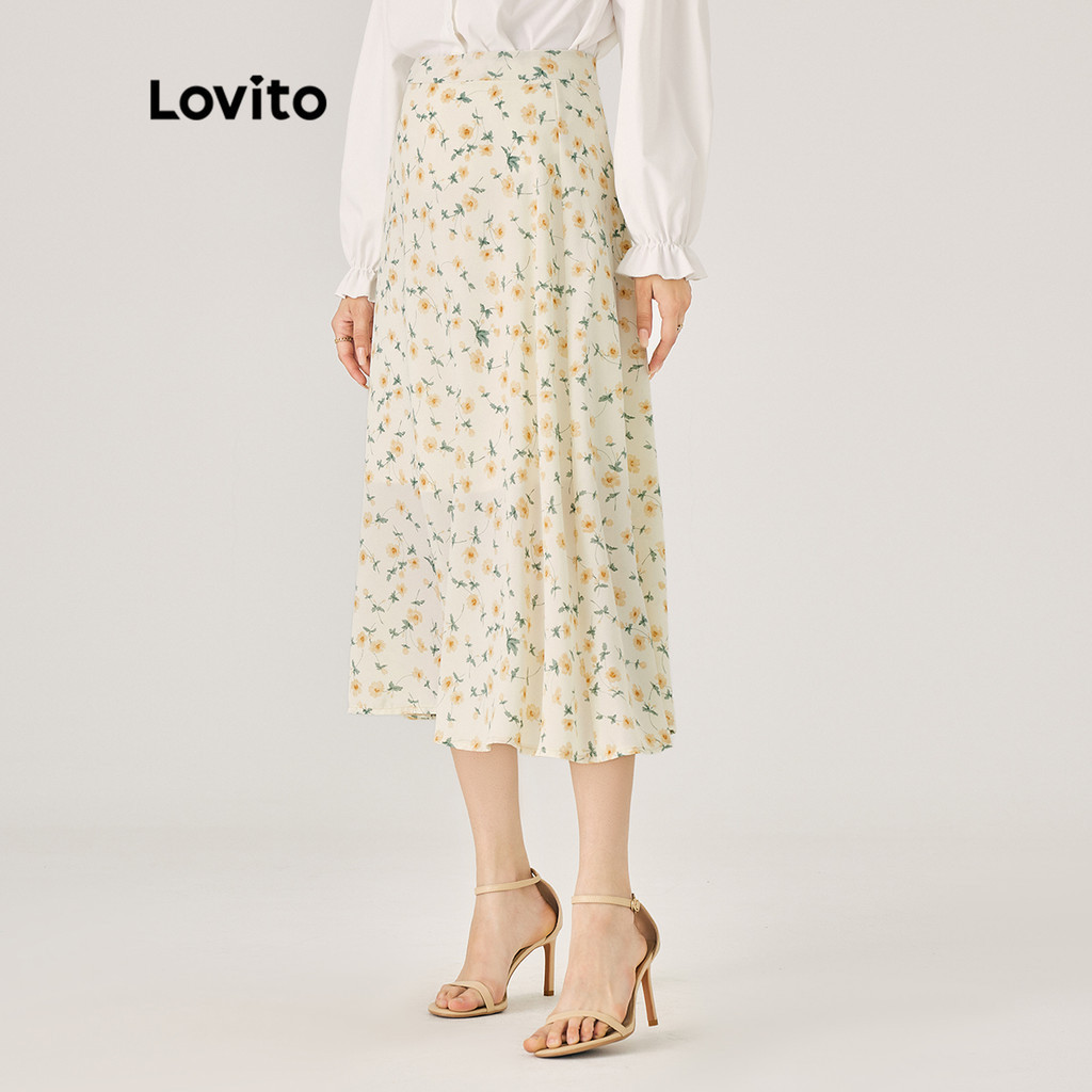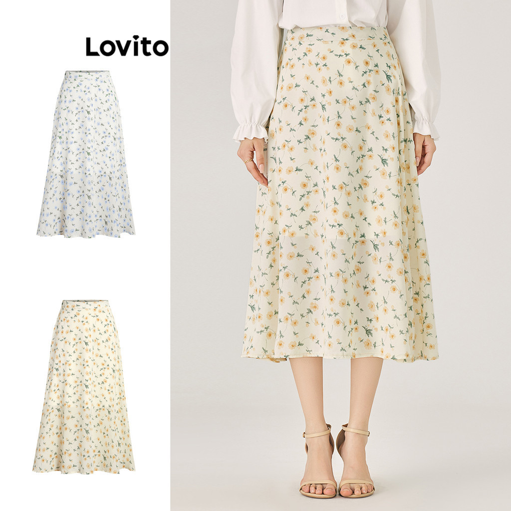 Lovito lne09166 Chân Váy Xếp Li Dài hoa thường ngày cho Nữ (Nhiều màu)