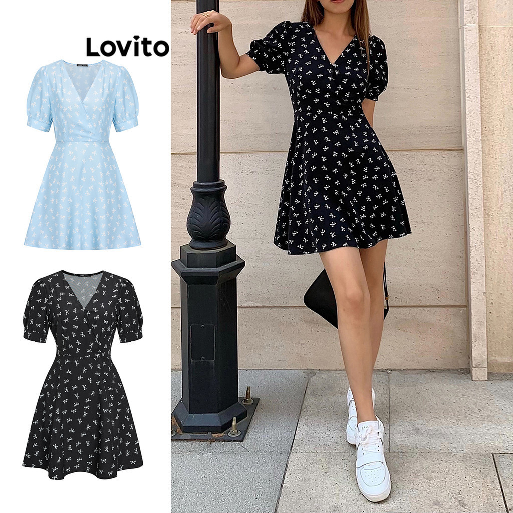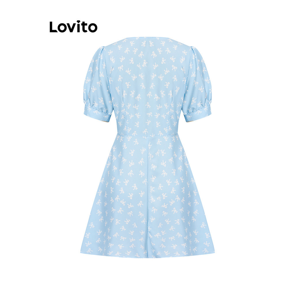 Lovito Đầm Nữ Cổ cài cúc Hoa Thường Ngày l59ed116 (Xanh dương & trắng)