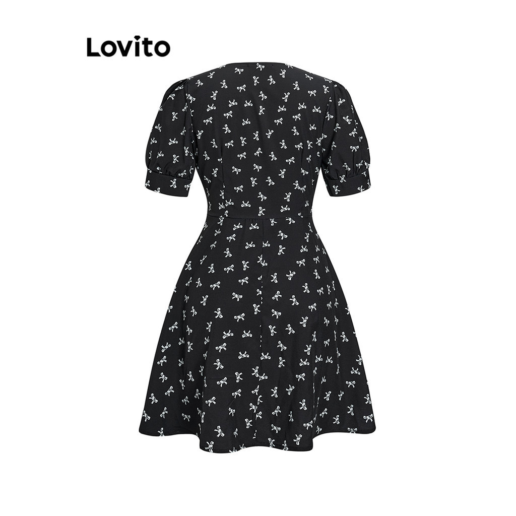 Lovito Đầm tay phồng nút màu tương phản phong cách thường ngày cho Nữ lne19053 (Nhiều màu)